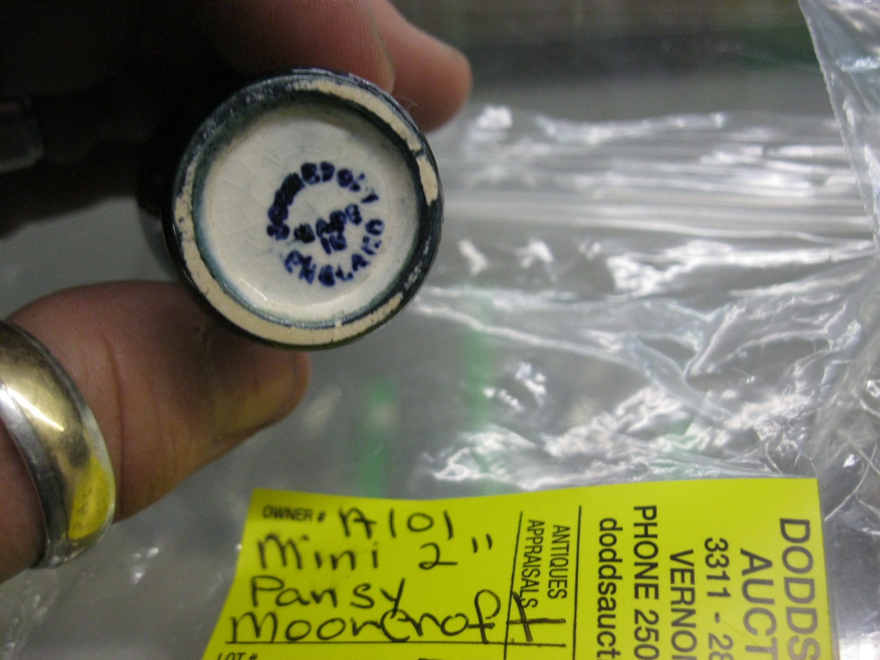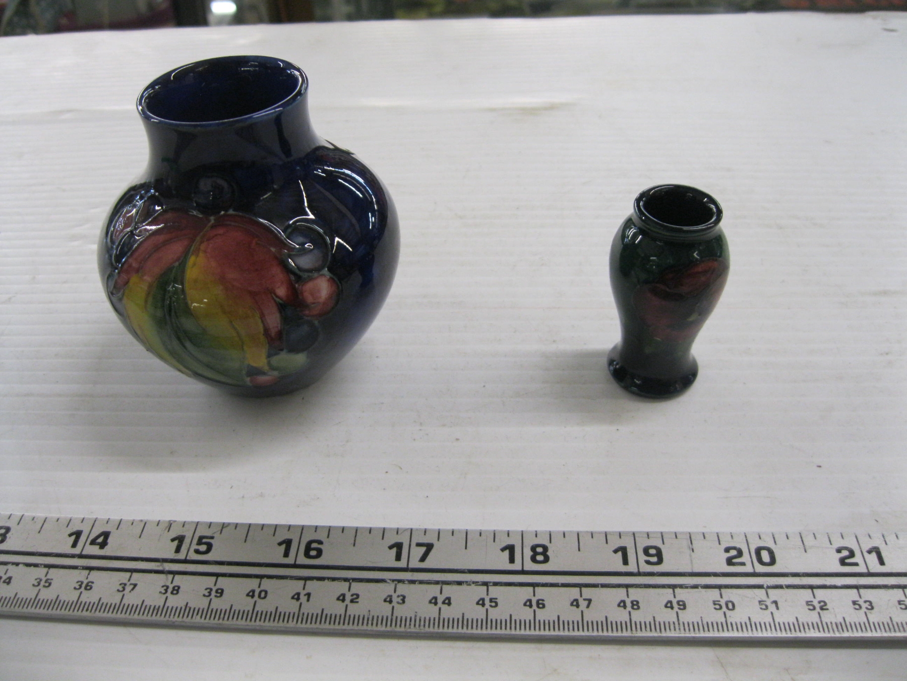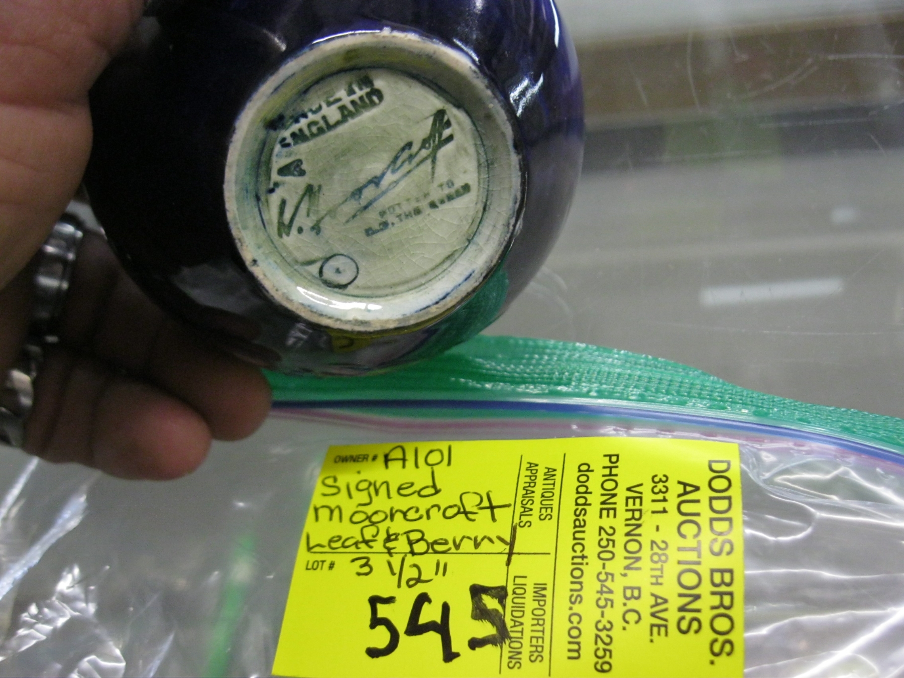 Lot 545 2 PIECES OF MOORCROFT - 3.5" LEAF & BERRY VASE & 2" MINI PANSIE VASE