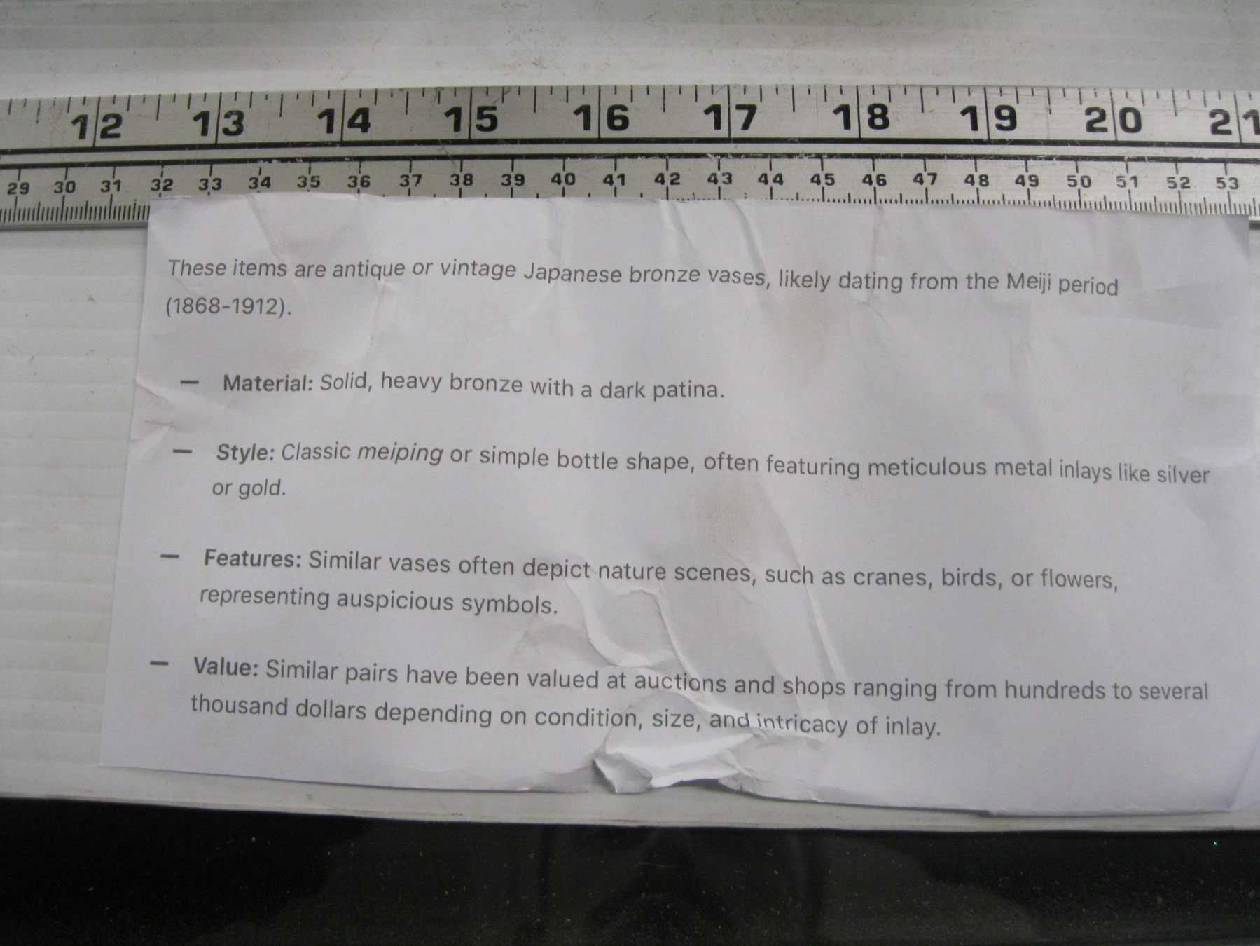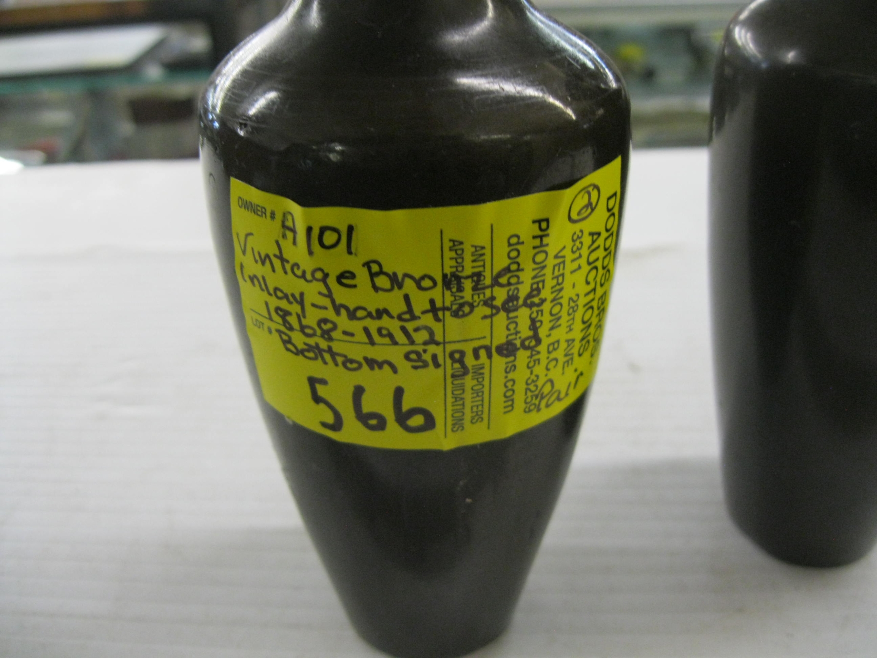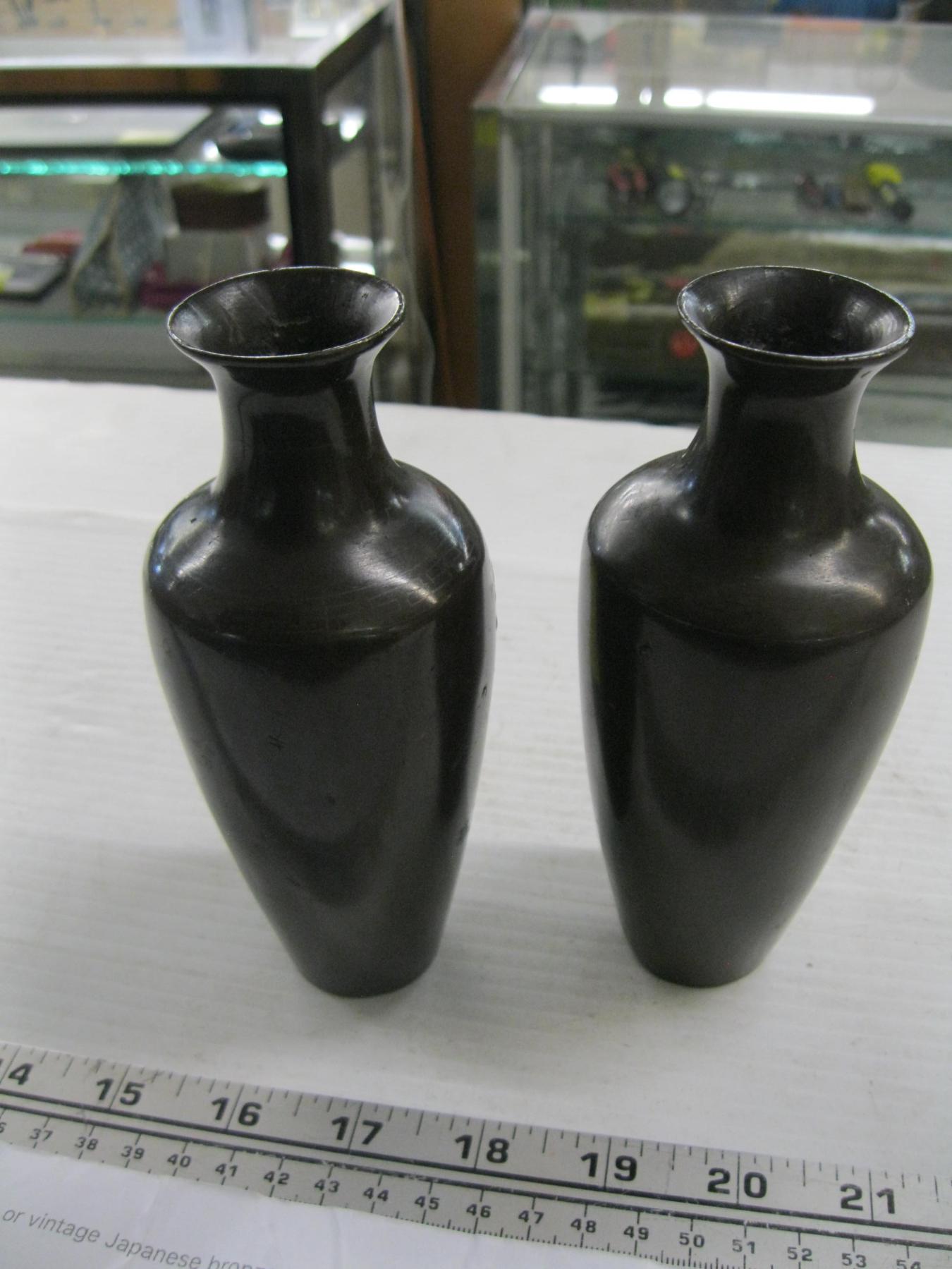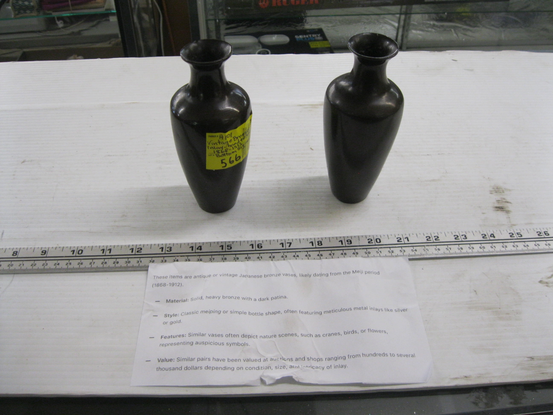 Lot 566 PAIR OF VINTAGE BRONZE INLAY SIGNED VASES