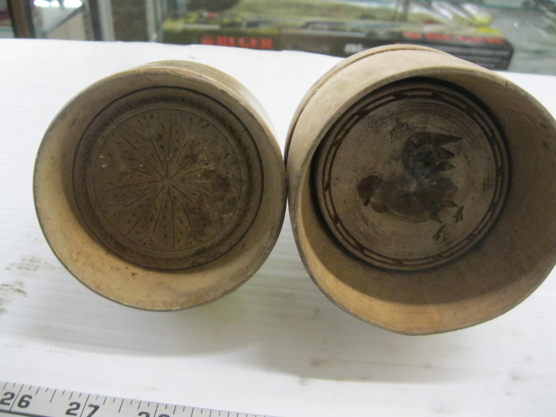 Lot 539 4 ROUND WOODEN BUTTER STAMPS