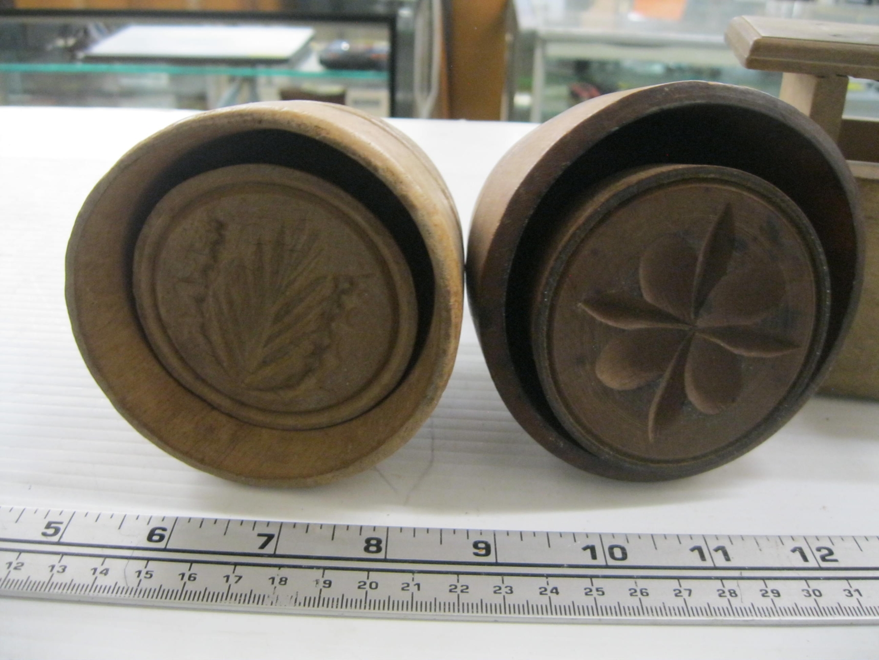 Lot 561 2 ROUND & 2 RECTANGULAR BUTTER PRESSES