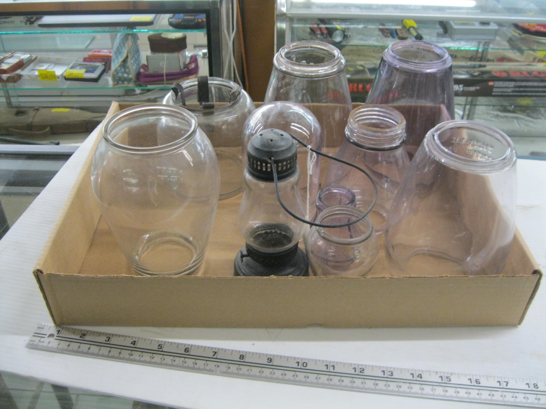Lot 588 VINTAGE GLASS SHADES, ETC.