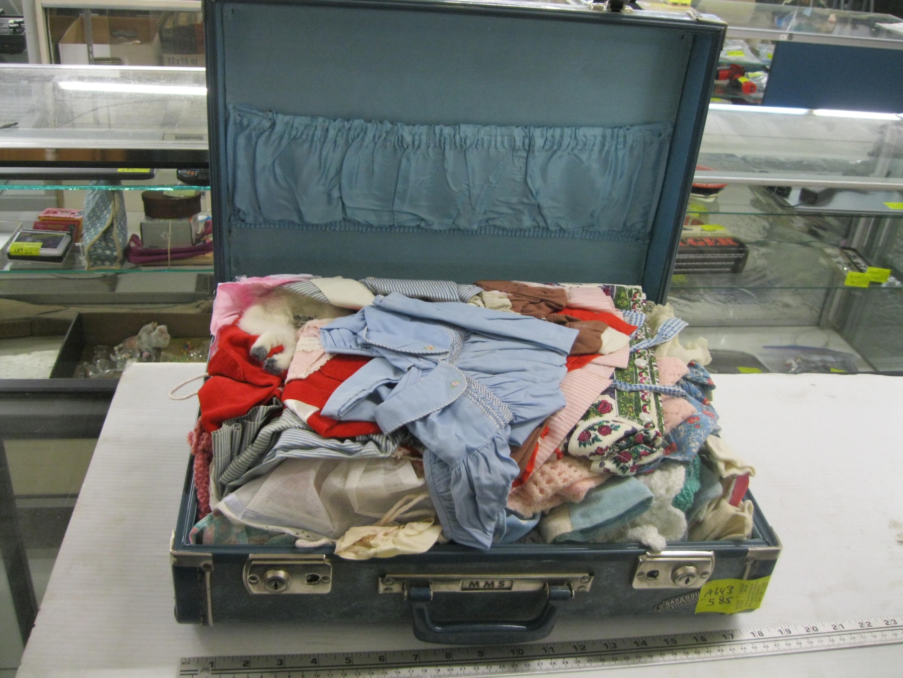 Lot 585 SUITCASE W/MISC. DOLL CLOTHES, ETC.