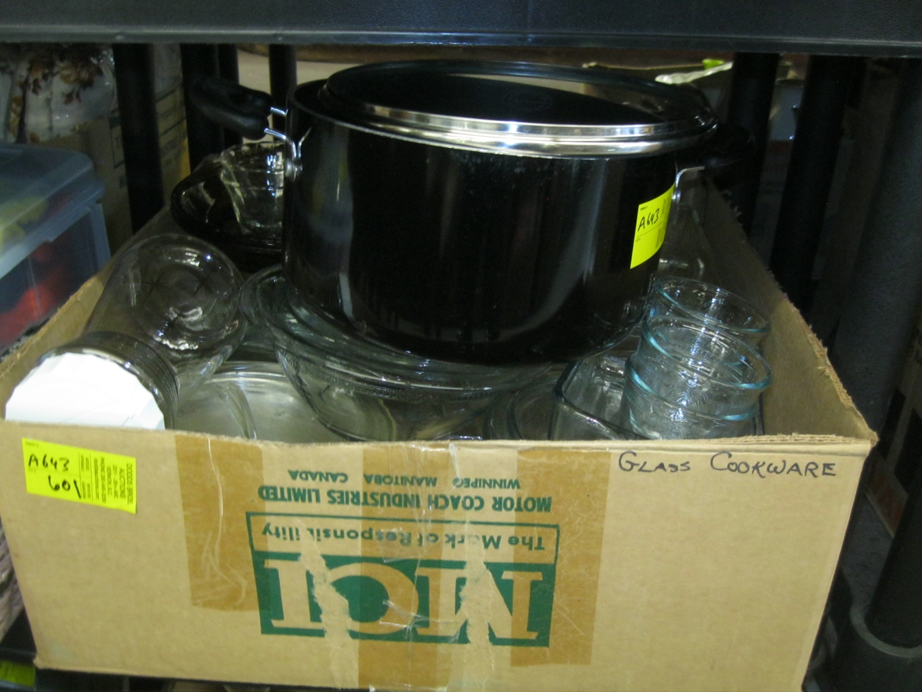 Lot 601 LARGE BOX OF ASST'D POTS, BAKING DISHES, ETC.