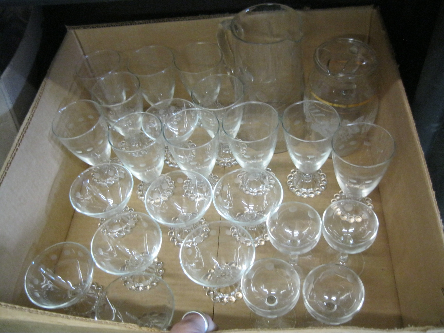 Lot 603 BOX OF DECORATIVE WINE GLASSES