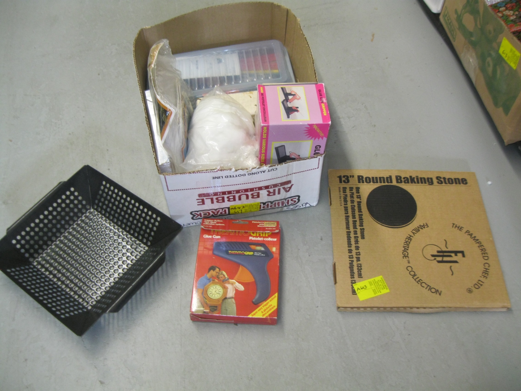 Lot 617 BOX OF MISC. - BAKING STONE, GLUE GUN, ETC.