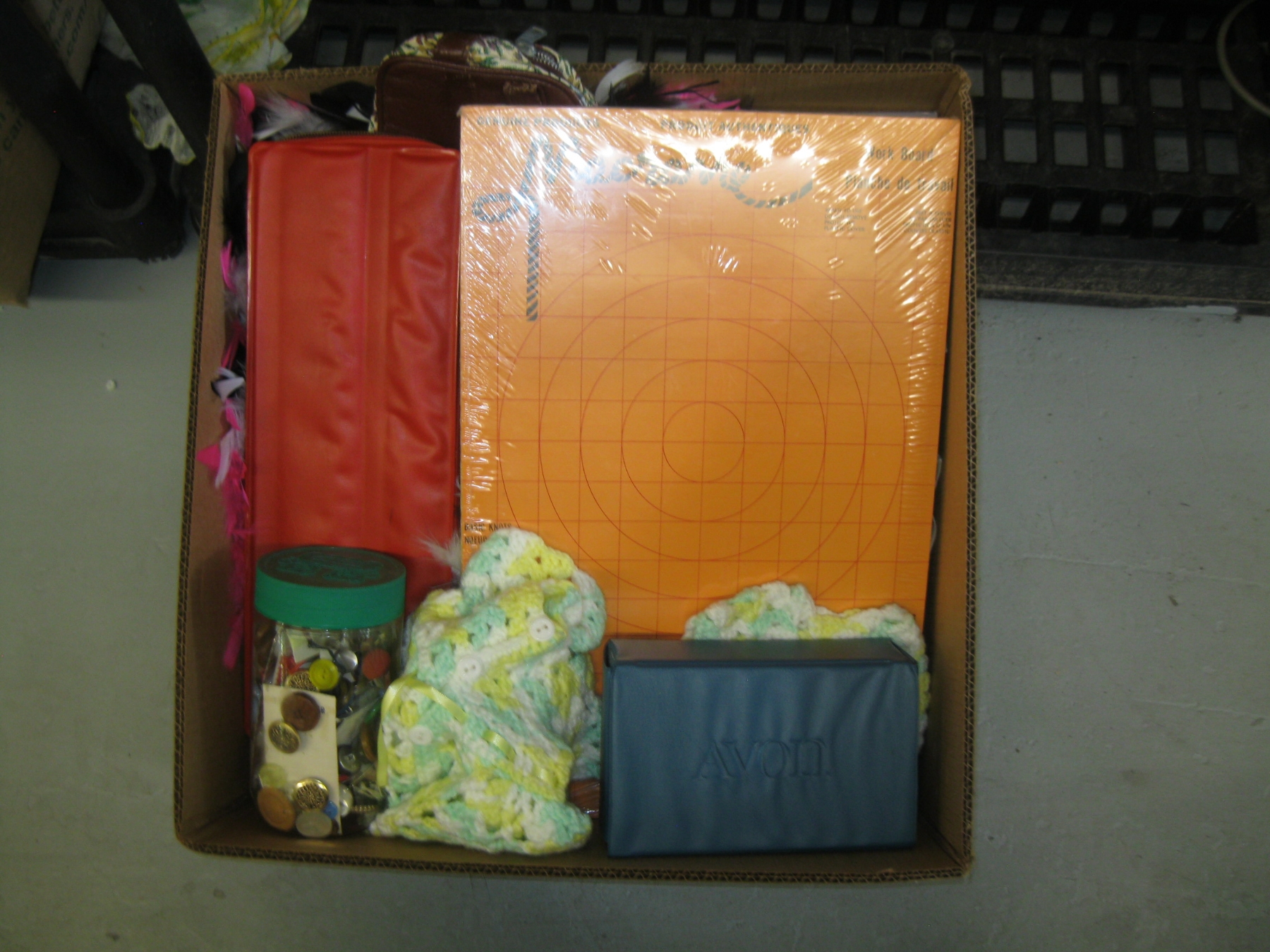 Lot 621 BOX OF MISC. - KNITTING NEEDLES, FEATHER BOA, ETC.