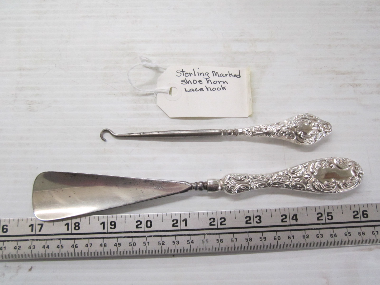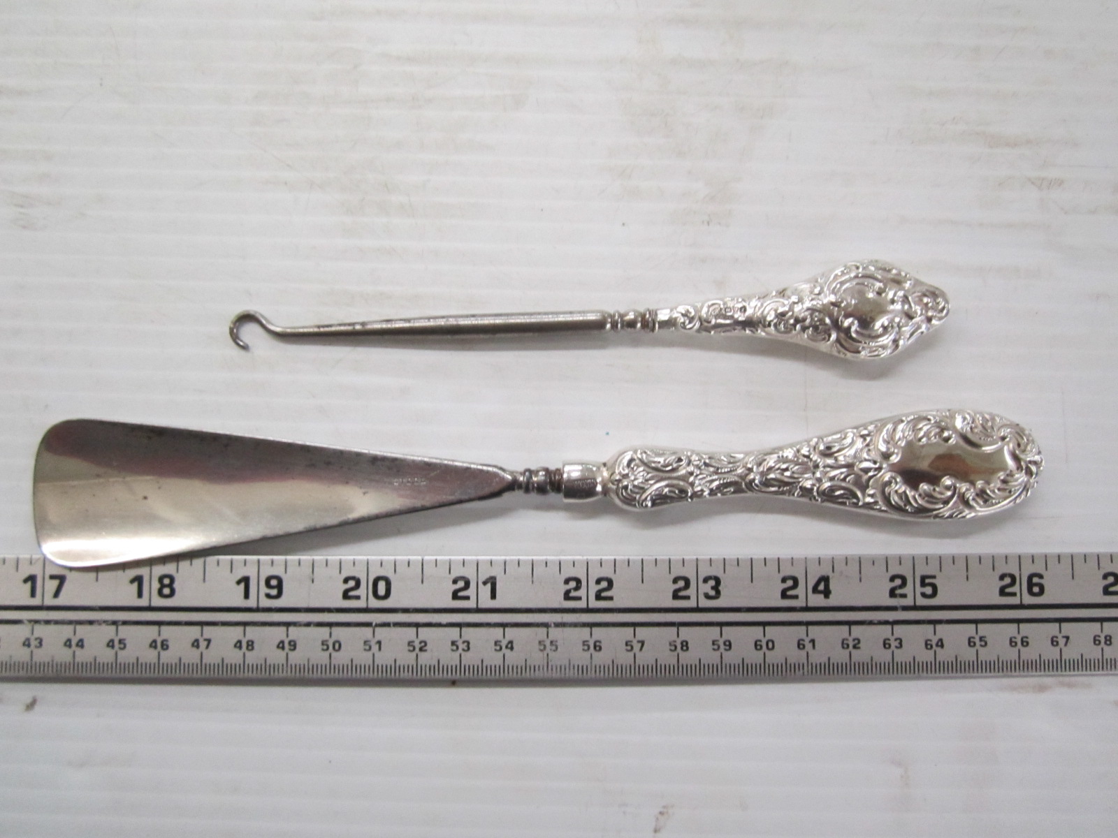 Lot 720 STERLING MARKED BUTTON HOOK & SHOEHORN