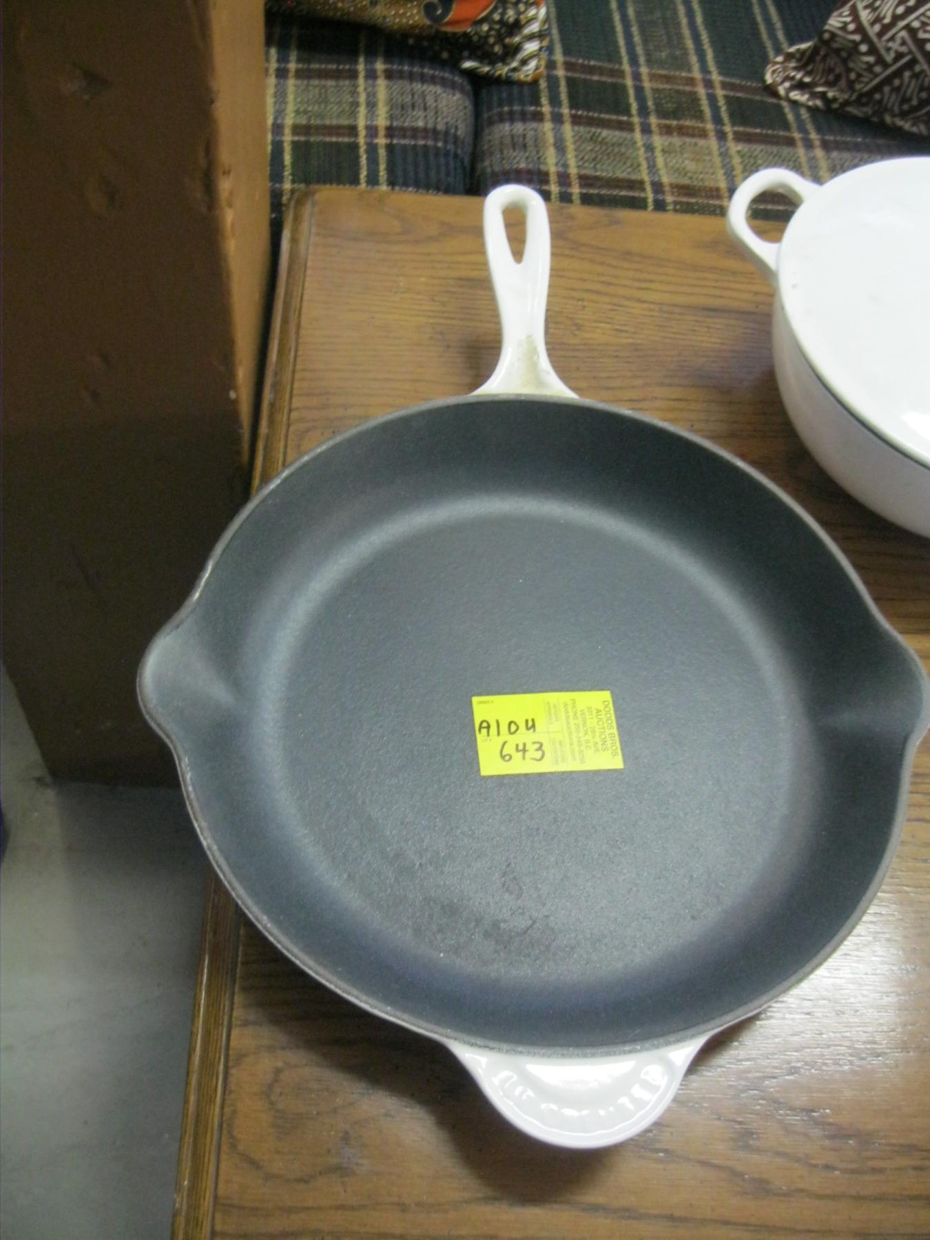 Lot 643 LARGE ENAMELLED LECREUSET FRY PAN