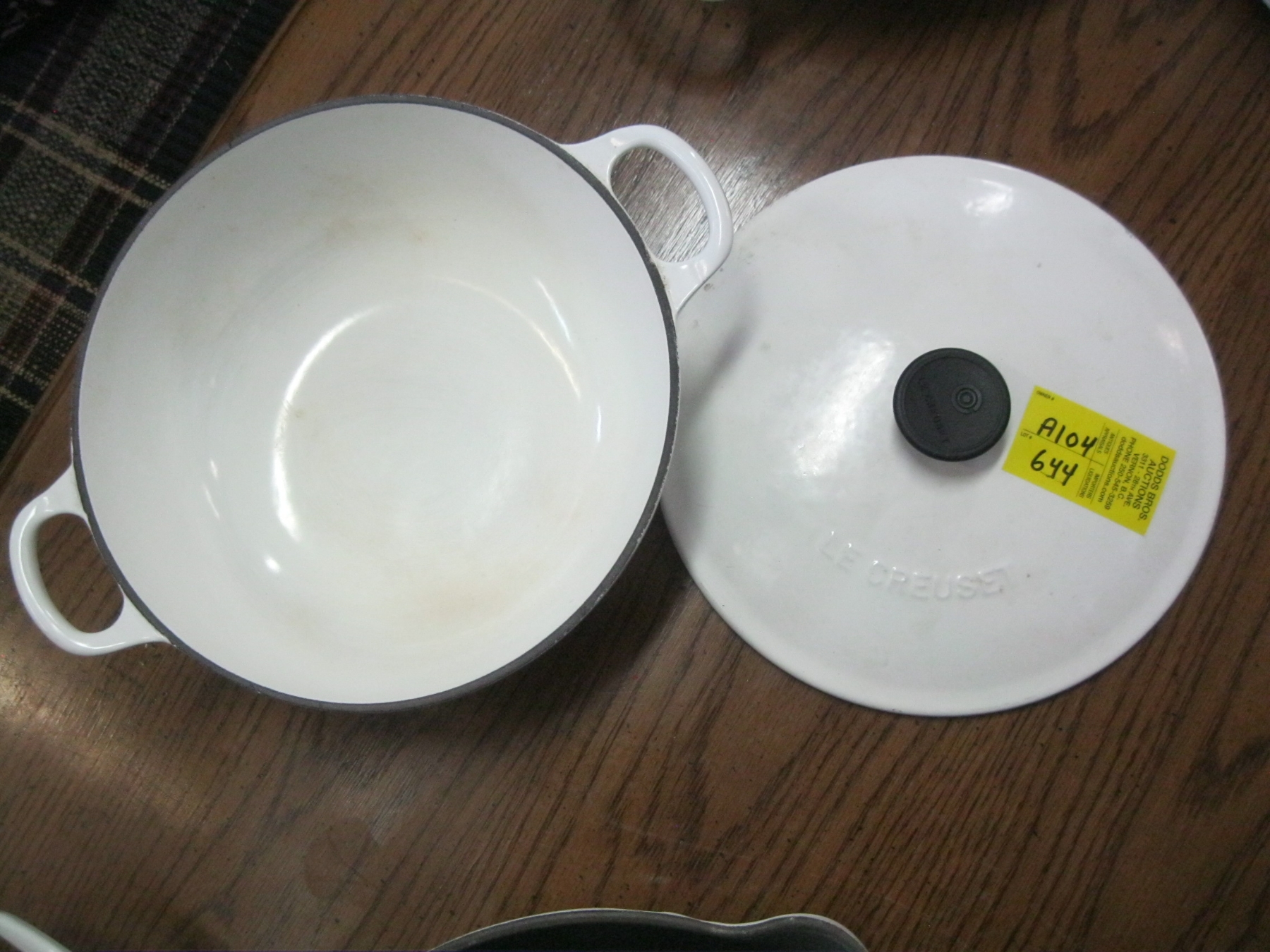 Lot 644 LECREUSET ENAMEL LIDDED POT, MADE IN FRANCE