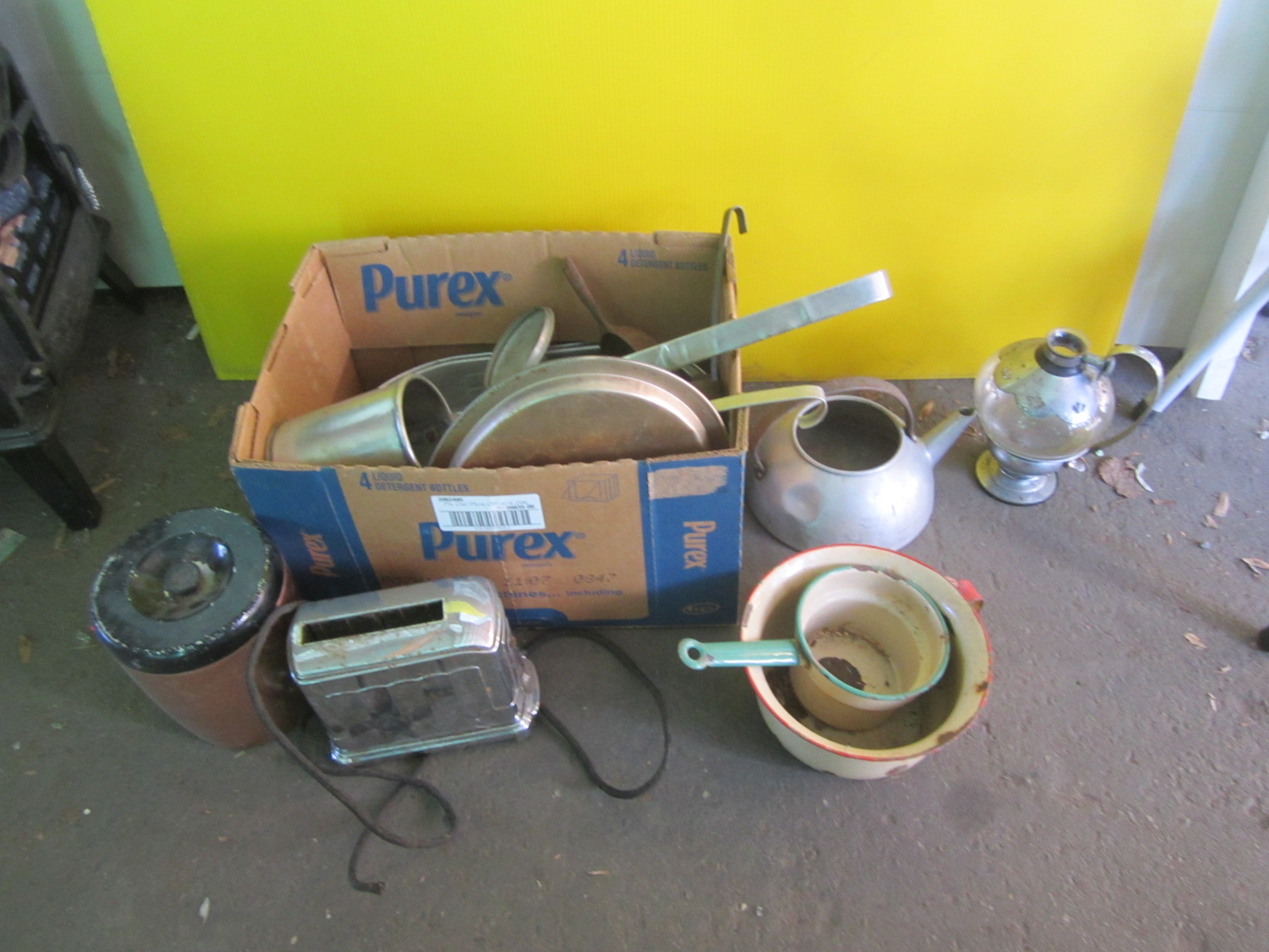 Lot 859 BOX OF MISC. - TOASTER, KETTLES, CANNISTER SET, ETC.
