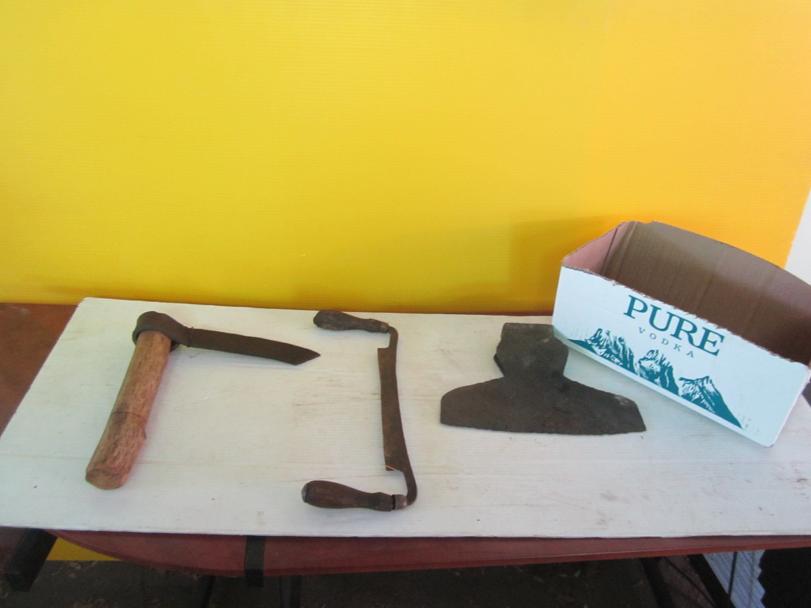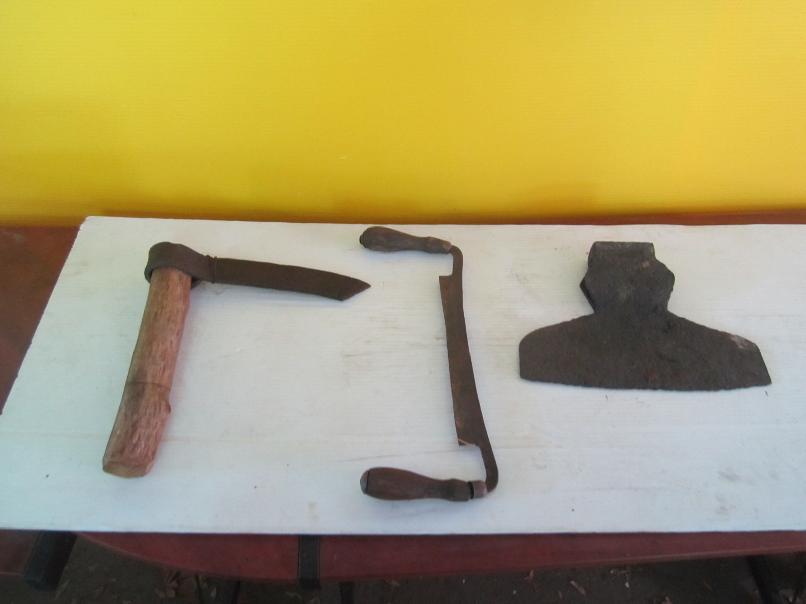 Lot 887 DRAWKNIFE, A FROE & A BROAD AXE HEAD