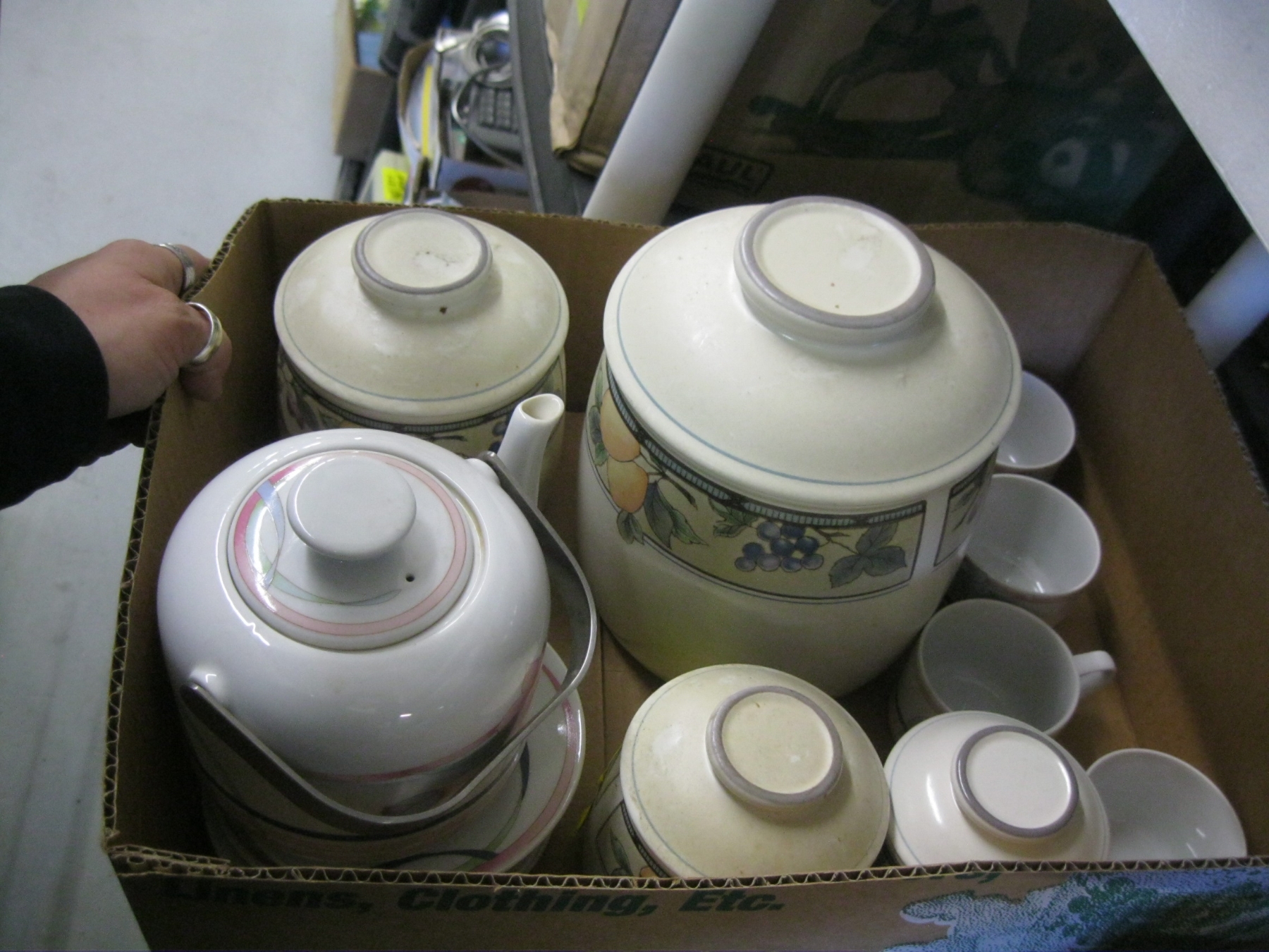 Lot 632 CANNISTER SET, TEAPOT, ETC.