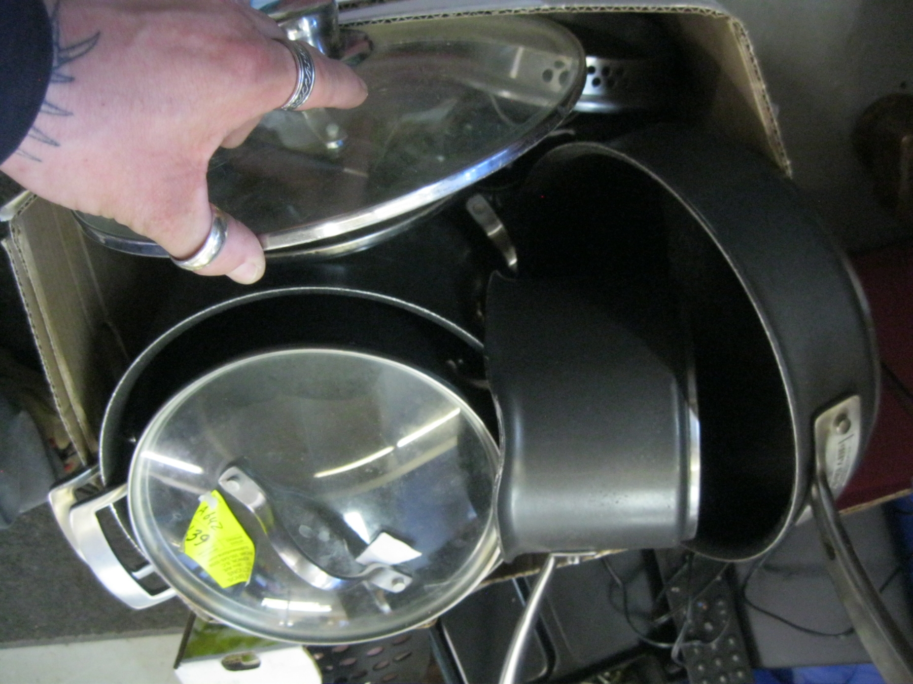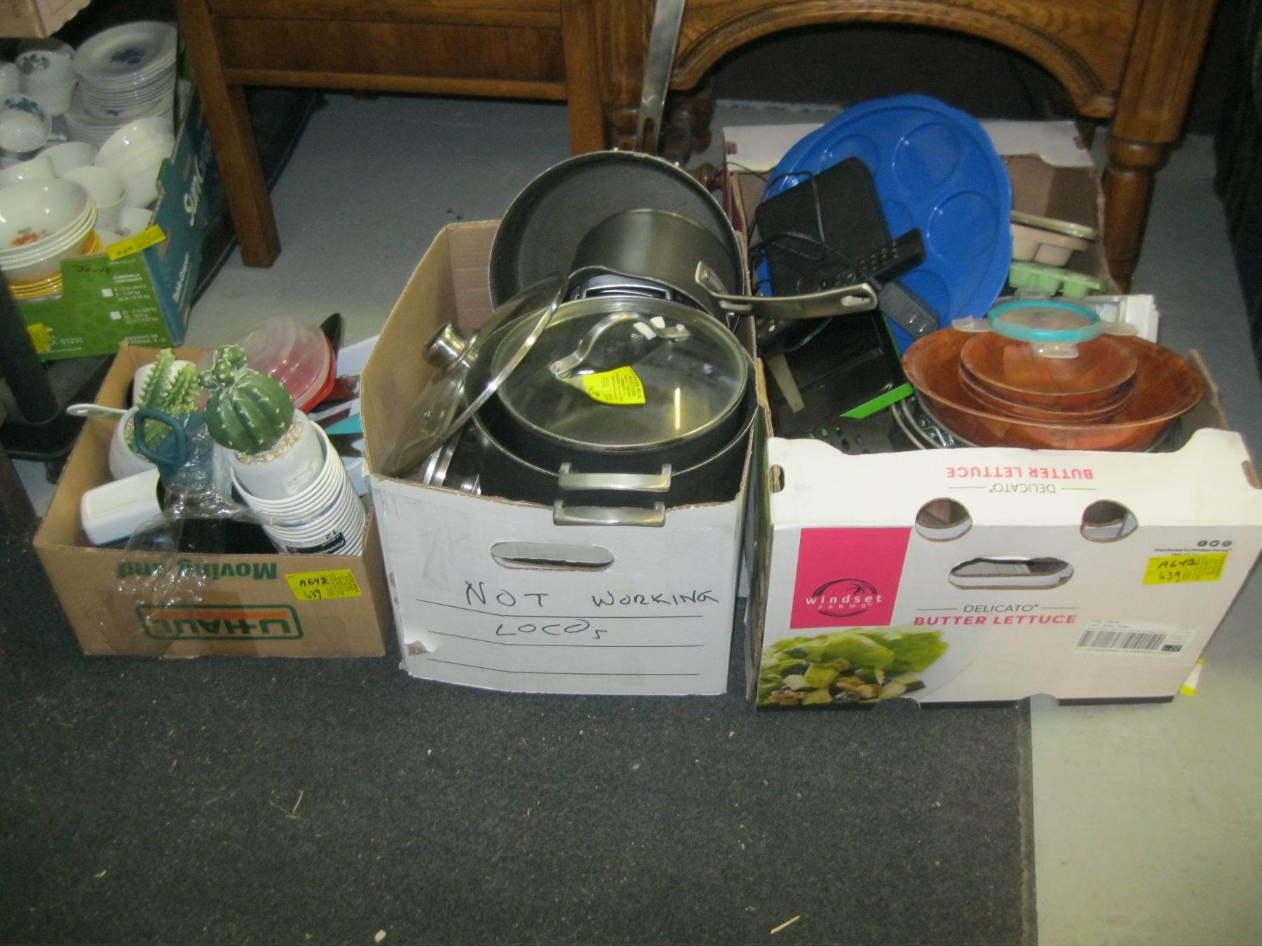 Lot 639 3 BOXES OF MISC. - POTS & PANS, UTENSILS, BAKING DISHES, ETC.