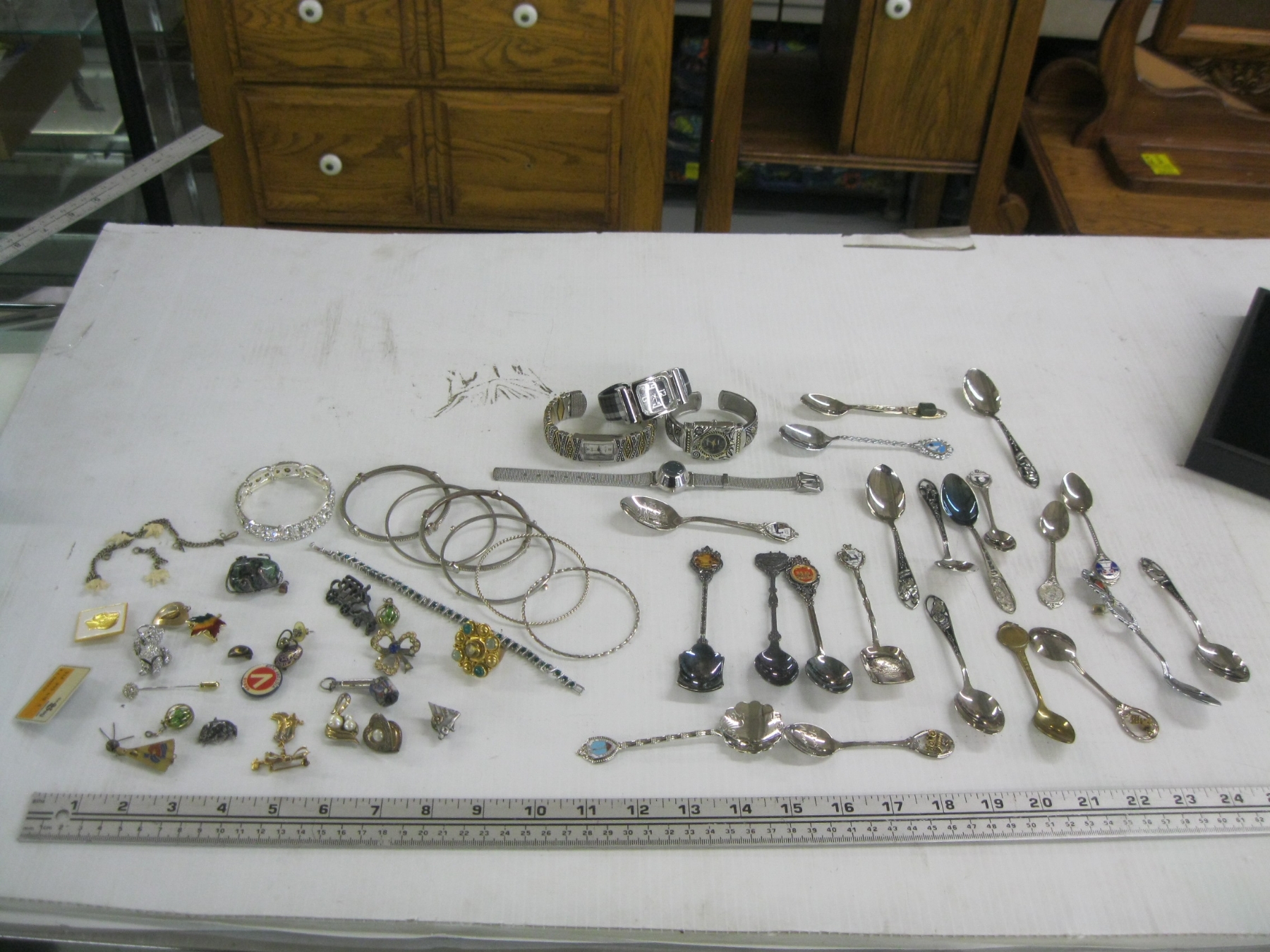 Lot 664 WATCHES, BRACELET, PENDANTS, COLLECTOR SPOONS, ETC.