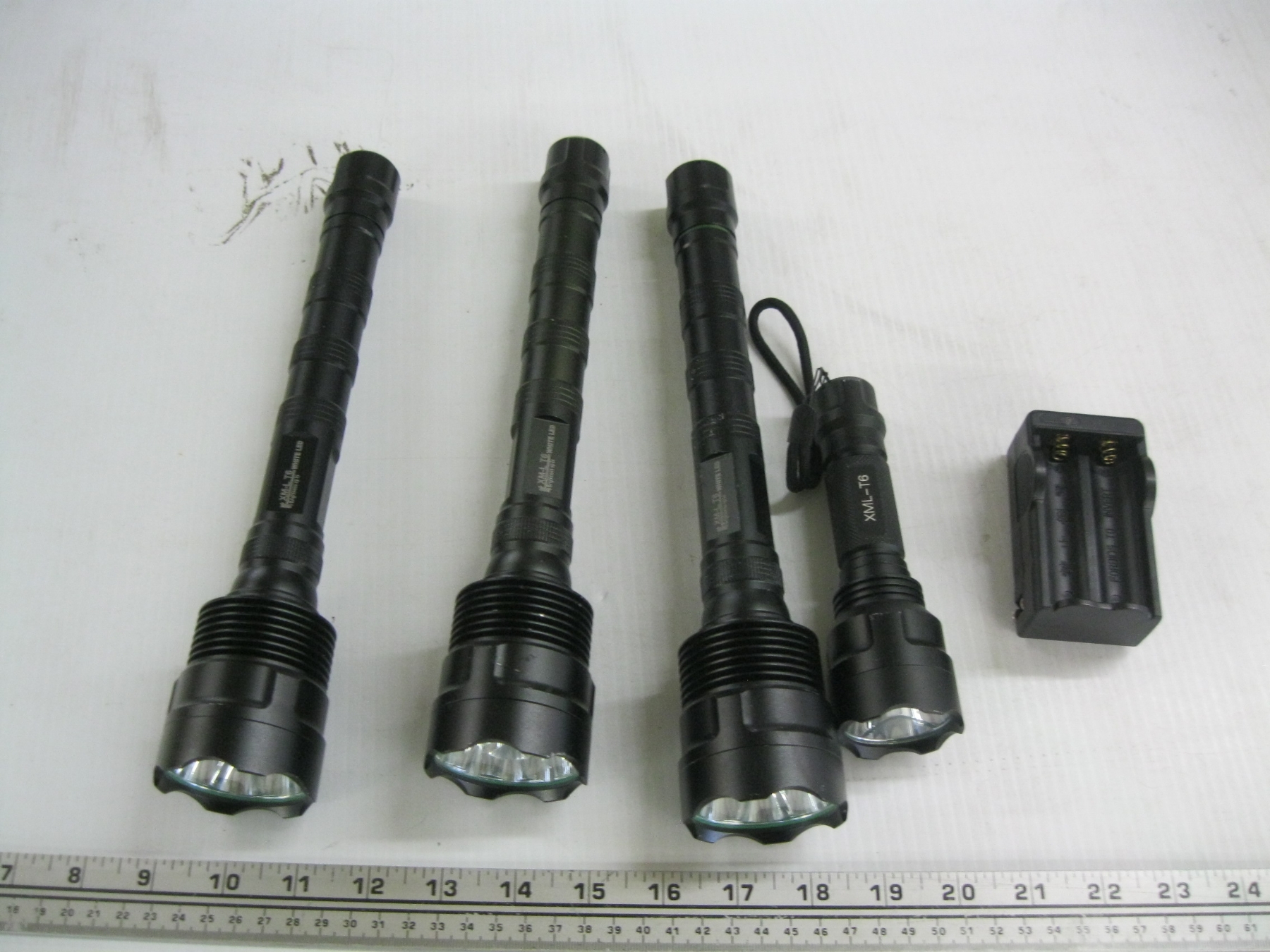 Lot 673 4 - LED FLASHLIGHTS W/ONE BATTERY CHARGER