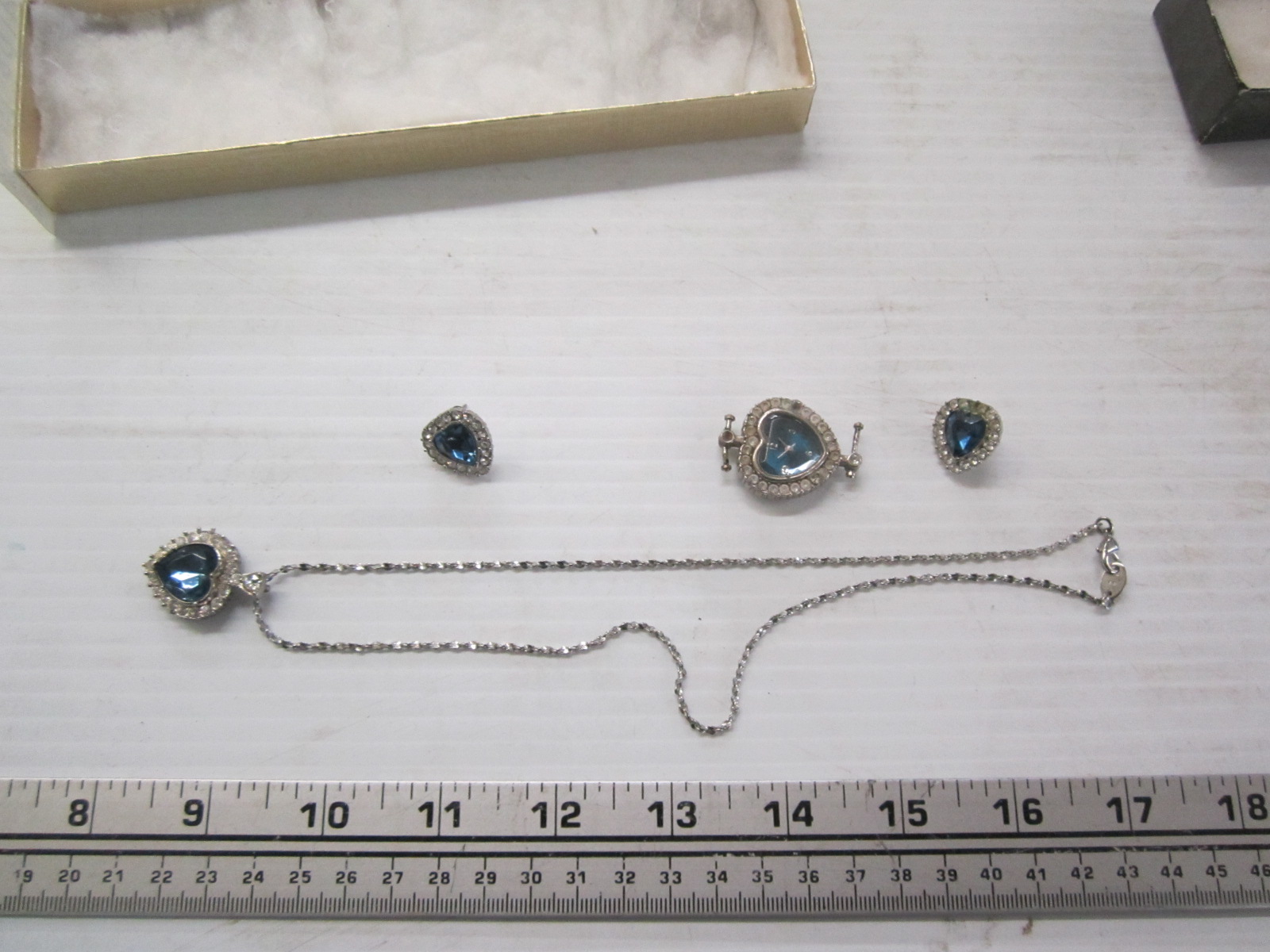 Lot 701 2 SMALL JEWELLERY BOXES WITH CHAIN, PENDANT SET & ANOTHER PENDANT & CHAIN