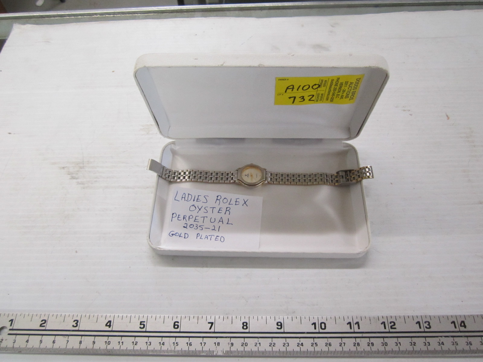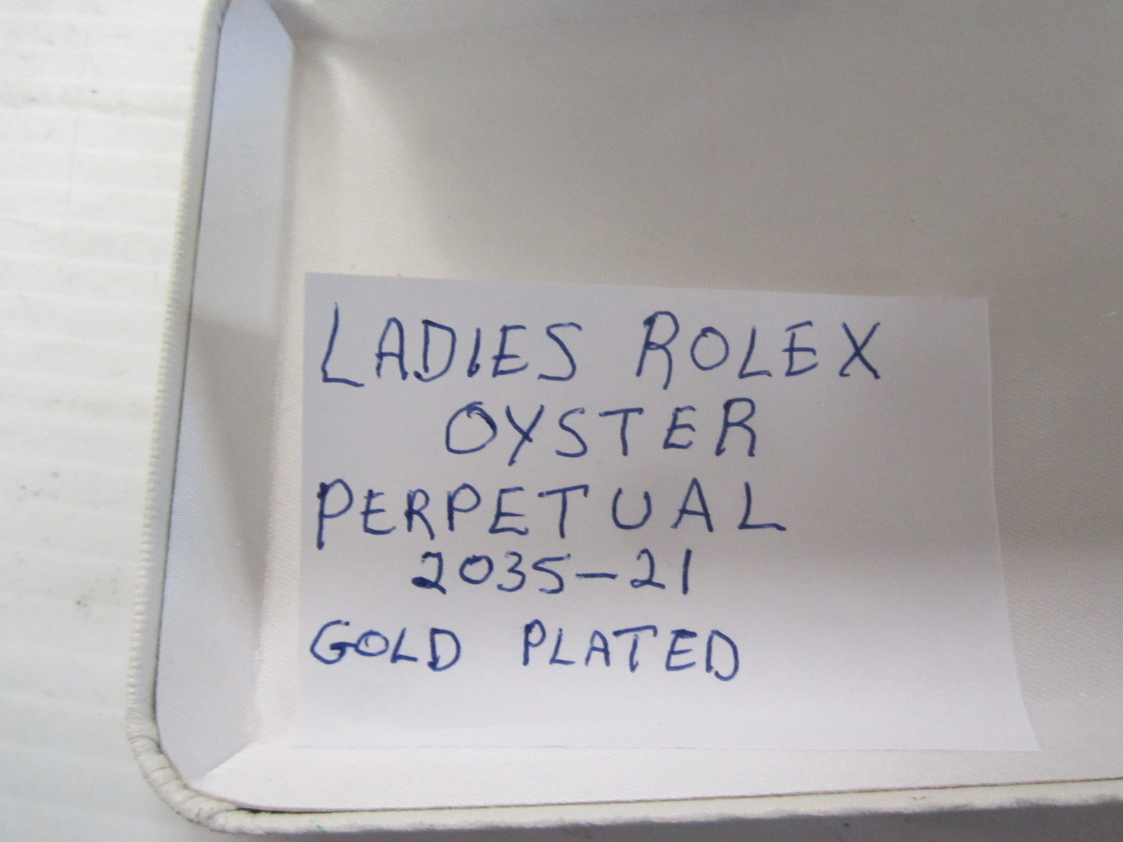 Lot 732 FAKE LADIES ROLEX OYSTER PERPETUAL 2035-21 GOLD PLATED WATCH