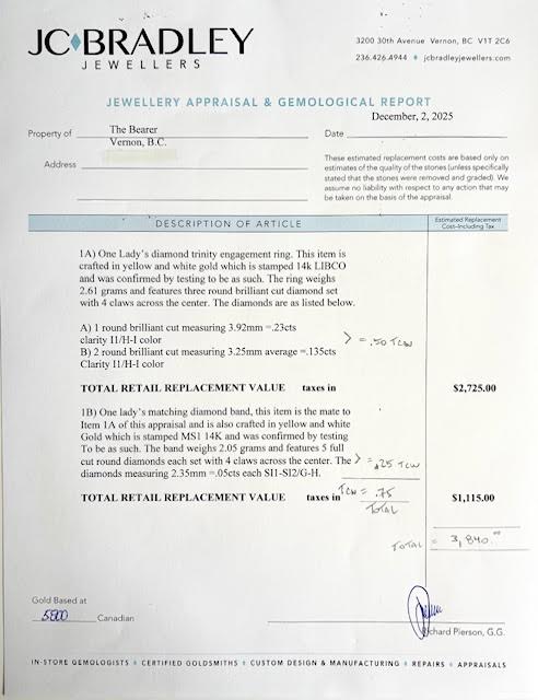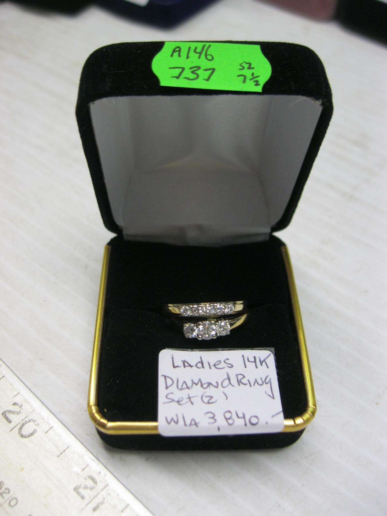 Lot 737 LADIES 14KT DIAMOND RING SET (2) W/APPRAISAL - $3,840. - SZ 7 1/2