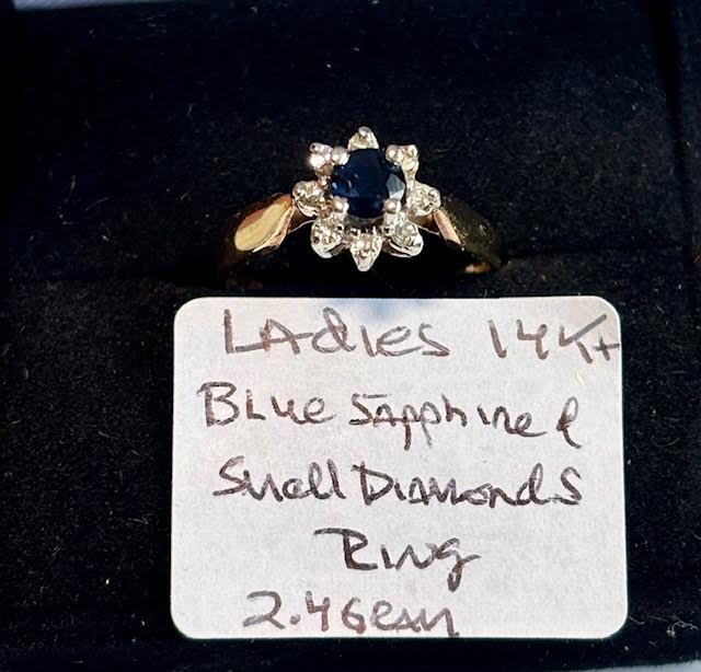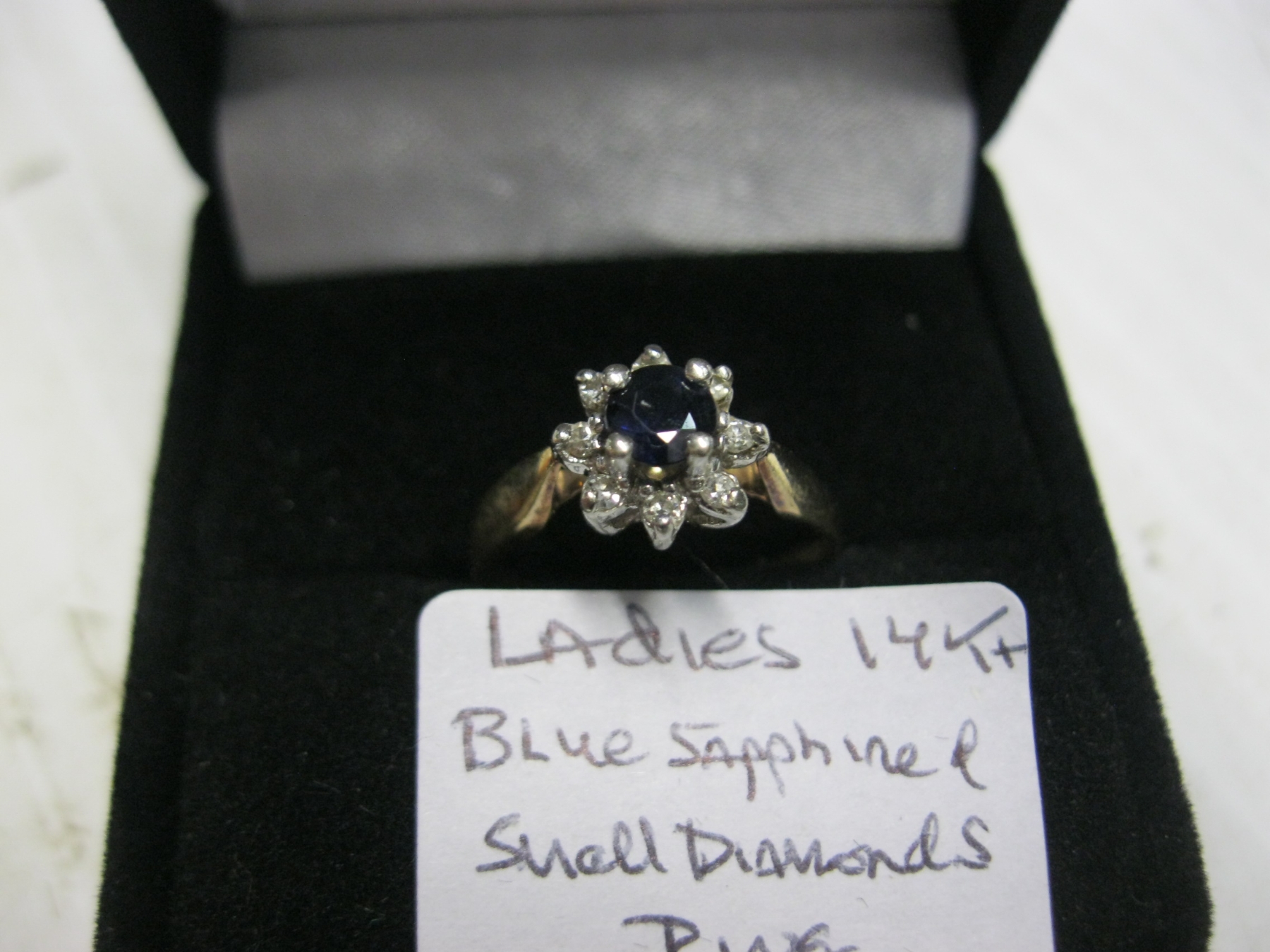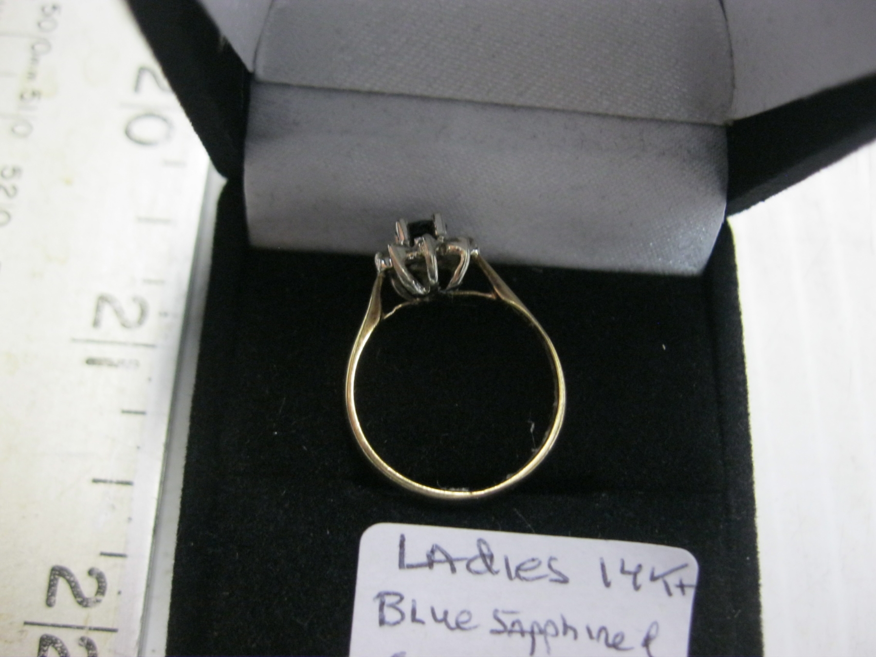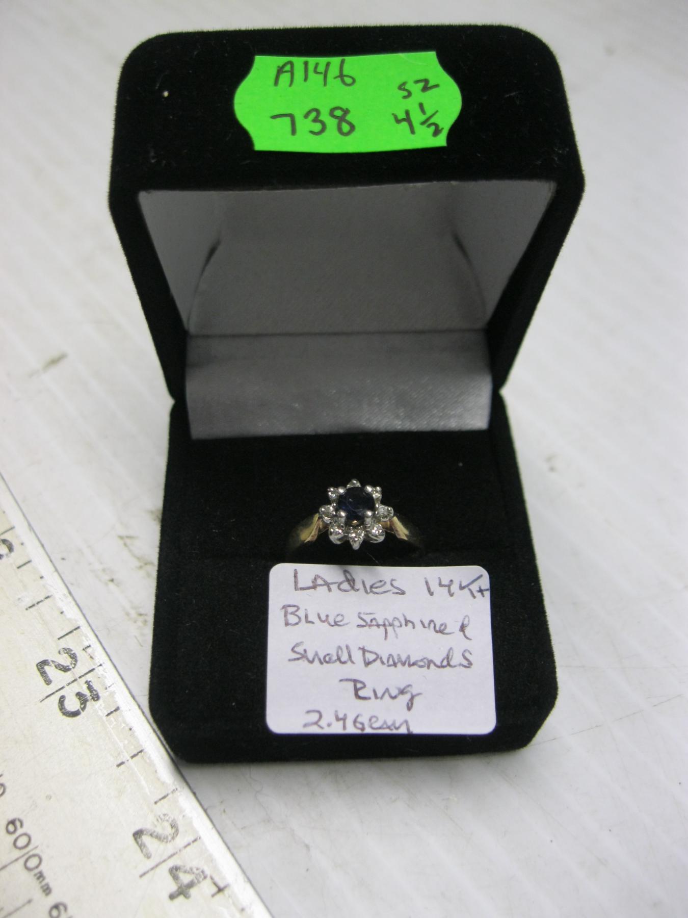 Lot 738 LADIES 14KT BLUE SAPPHIRE & SMALL DIAMONDS RING - 2.4G - SZ 4 1/2