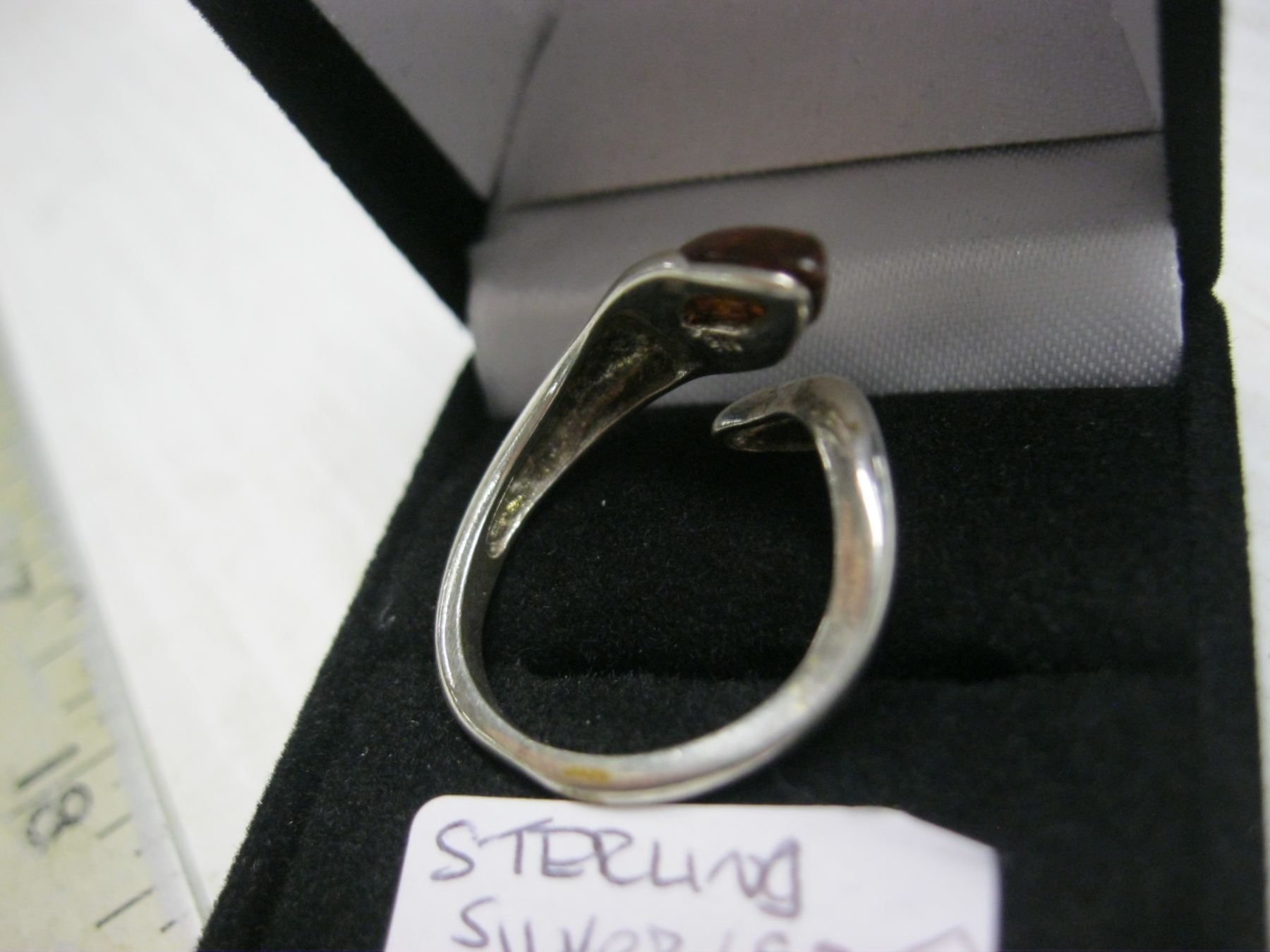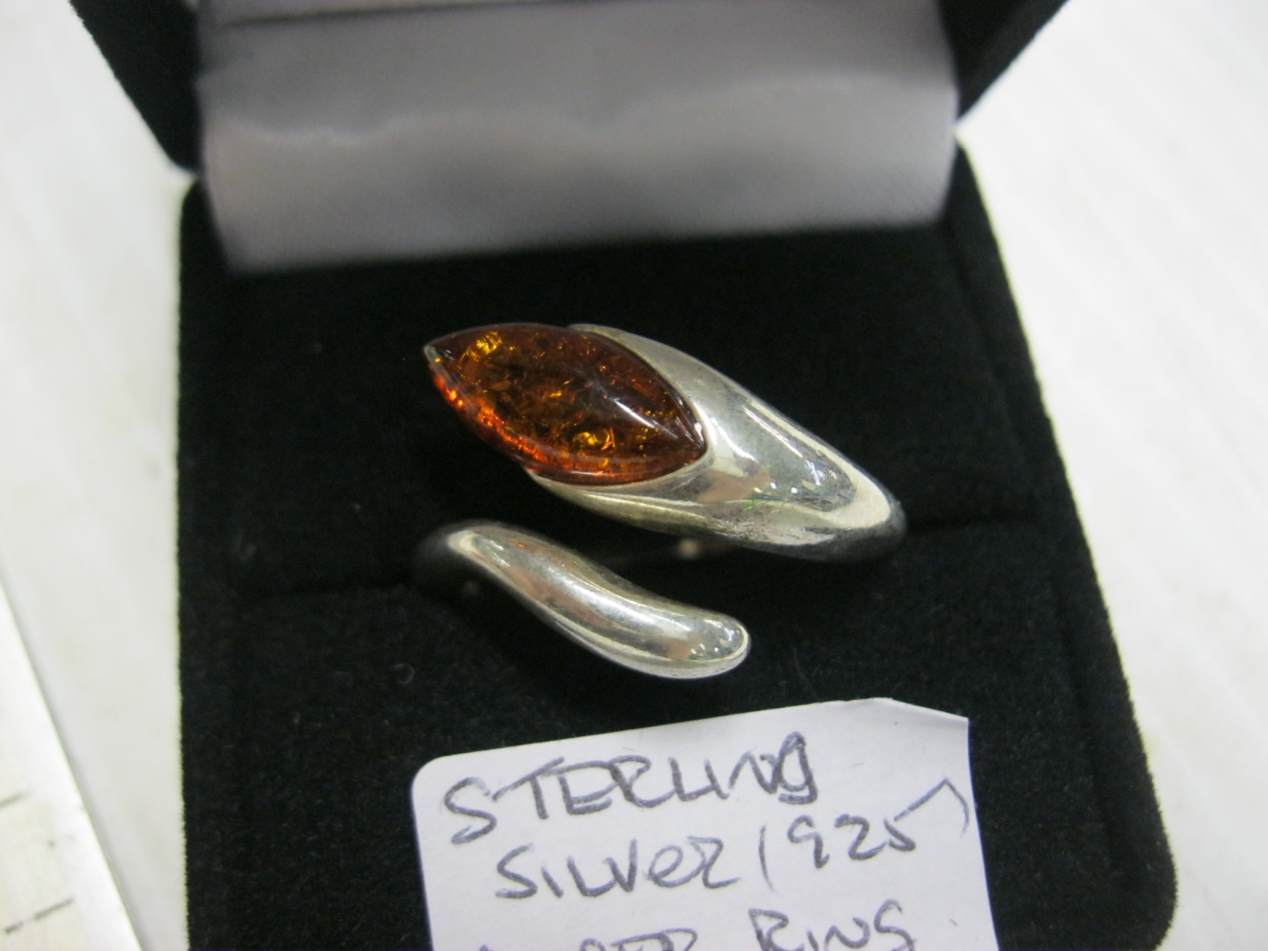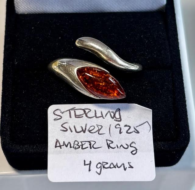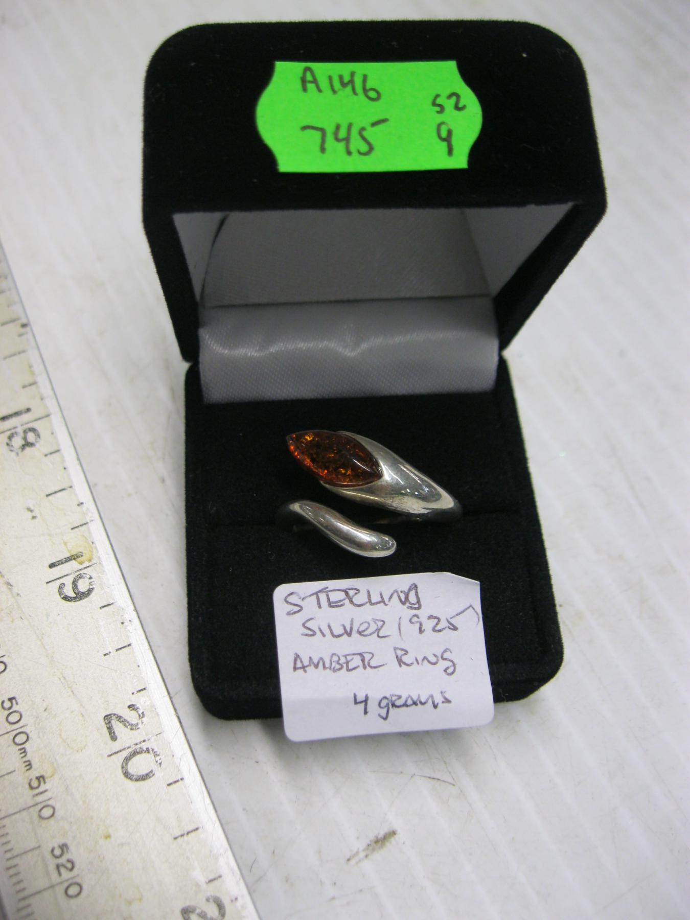 Lot 745 STERLING .925 SILVER RING W/AMBER STONE - 4G - SZ 9