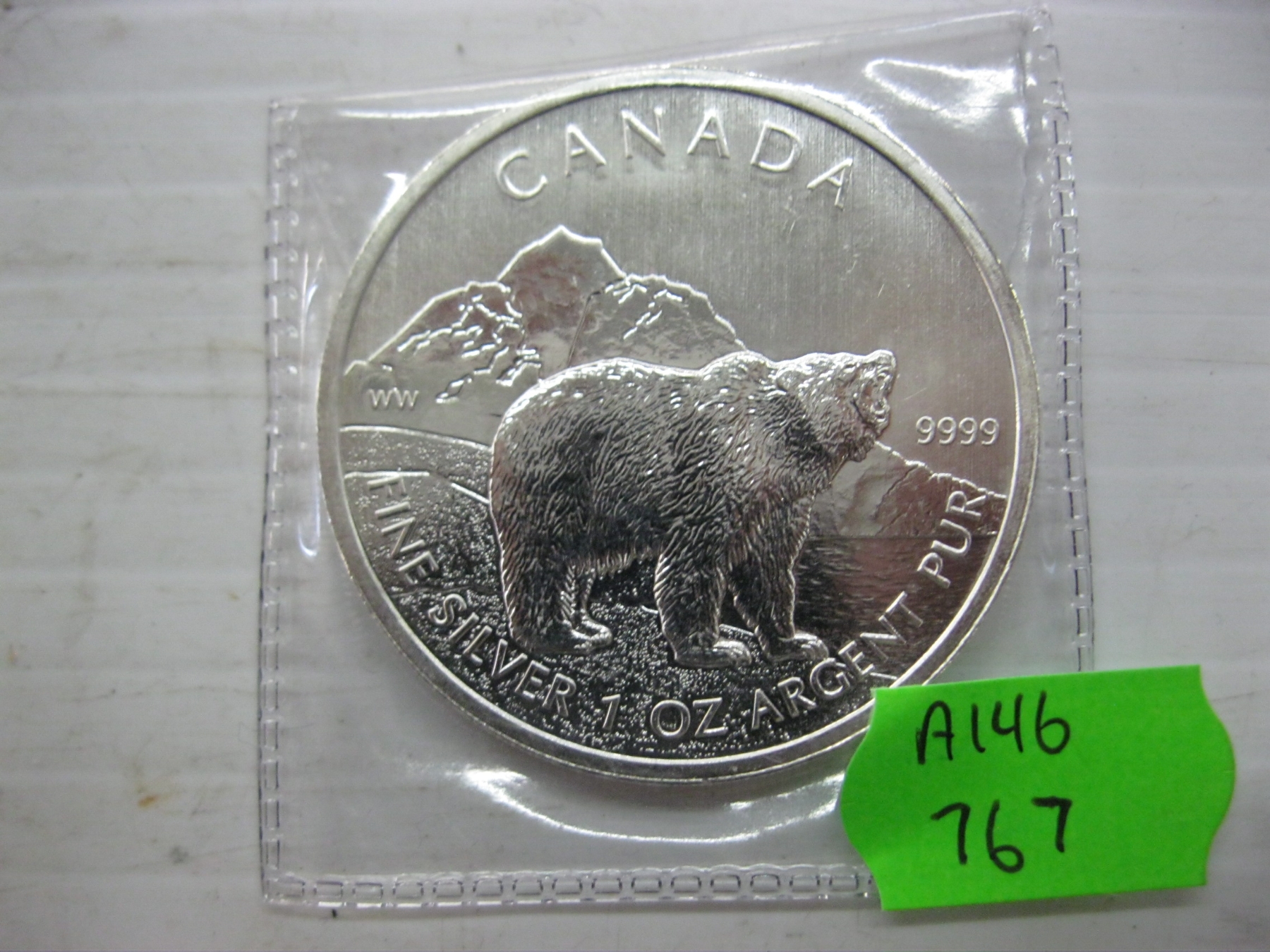 Lot 767 CDN 1 OZ. .999 SILVER COIN - GRIZZLY BEAR (TAX EXEMPT)