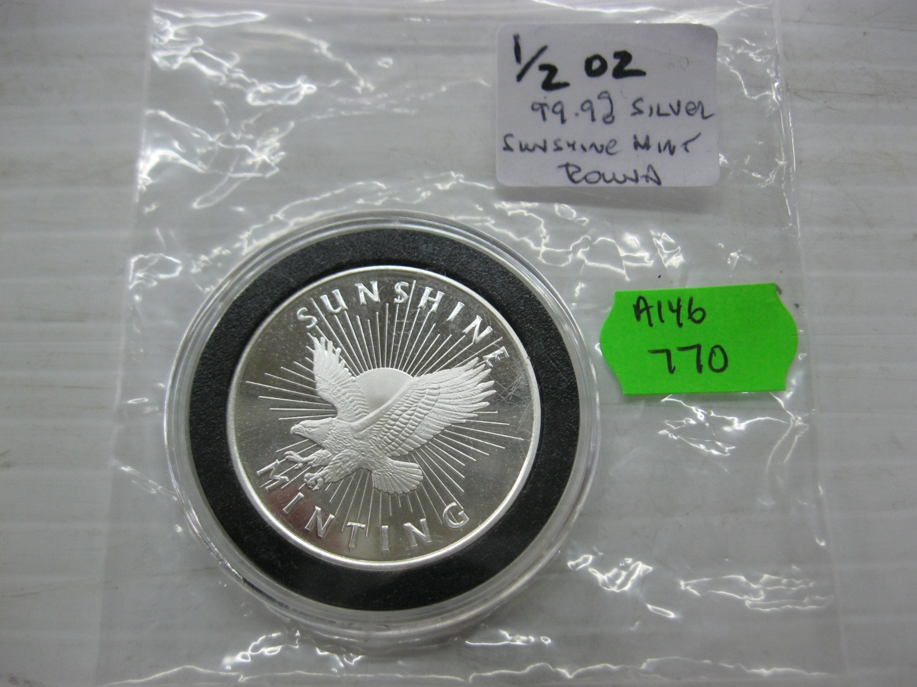 Lot 770 SUNSHINE MINT 0.5 OZ. .999 SILVER ROUND (TAX EXEMPT)
