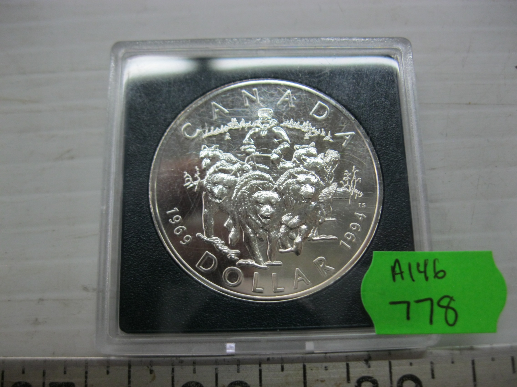 Lot 778 1994 CDN $1 .925 SILVER PROOF COIN - COMMEMORATING 25TH ANNIV. OF LAST RCMP DOG TEAM