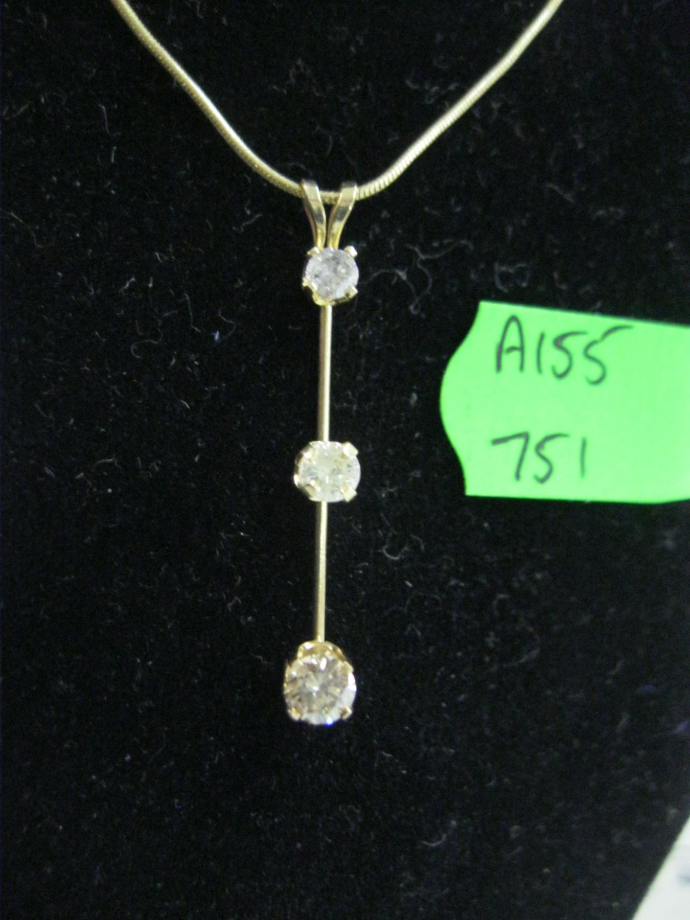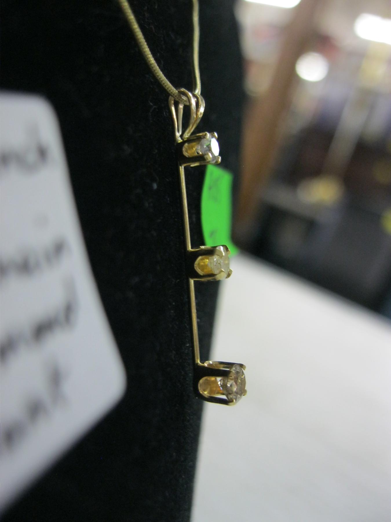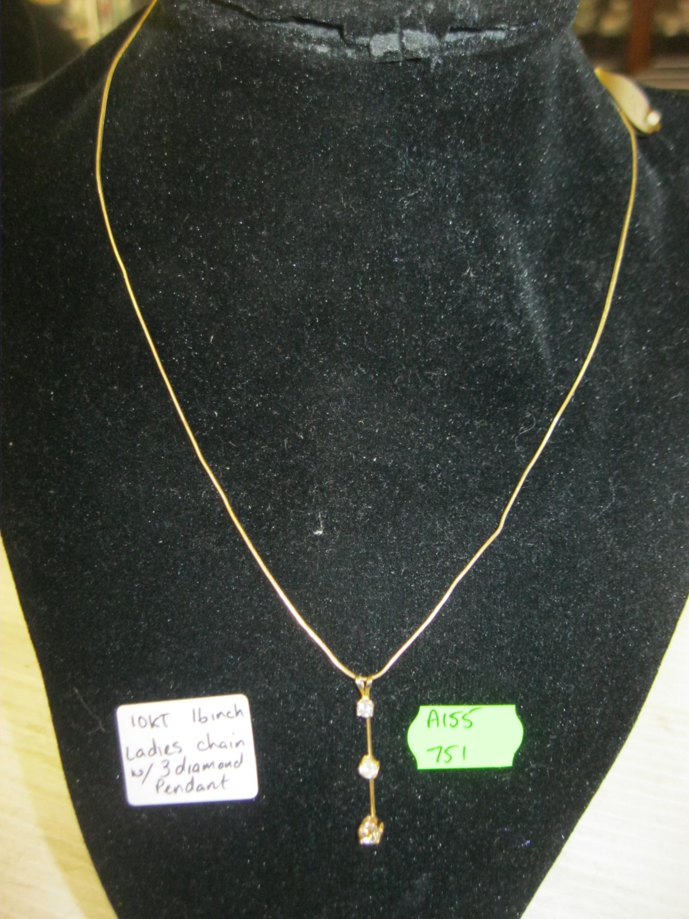 Lot 751 10KT 16" LADIES CHAIN W/3 DIAMOND PENDANT