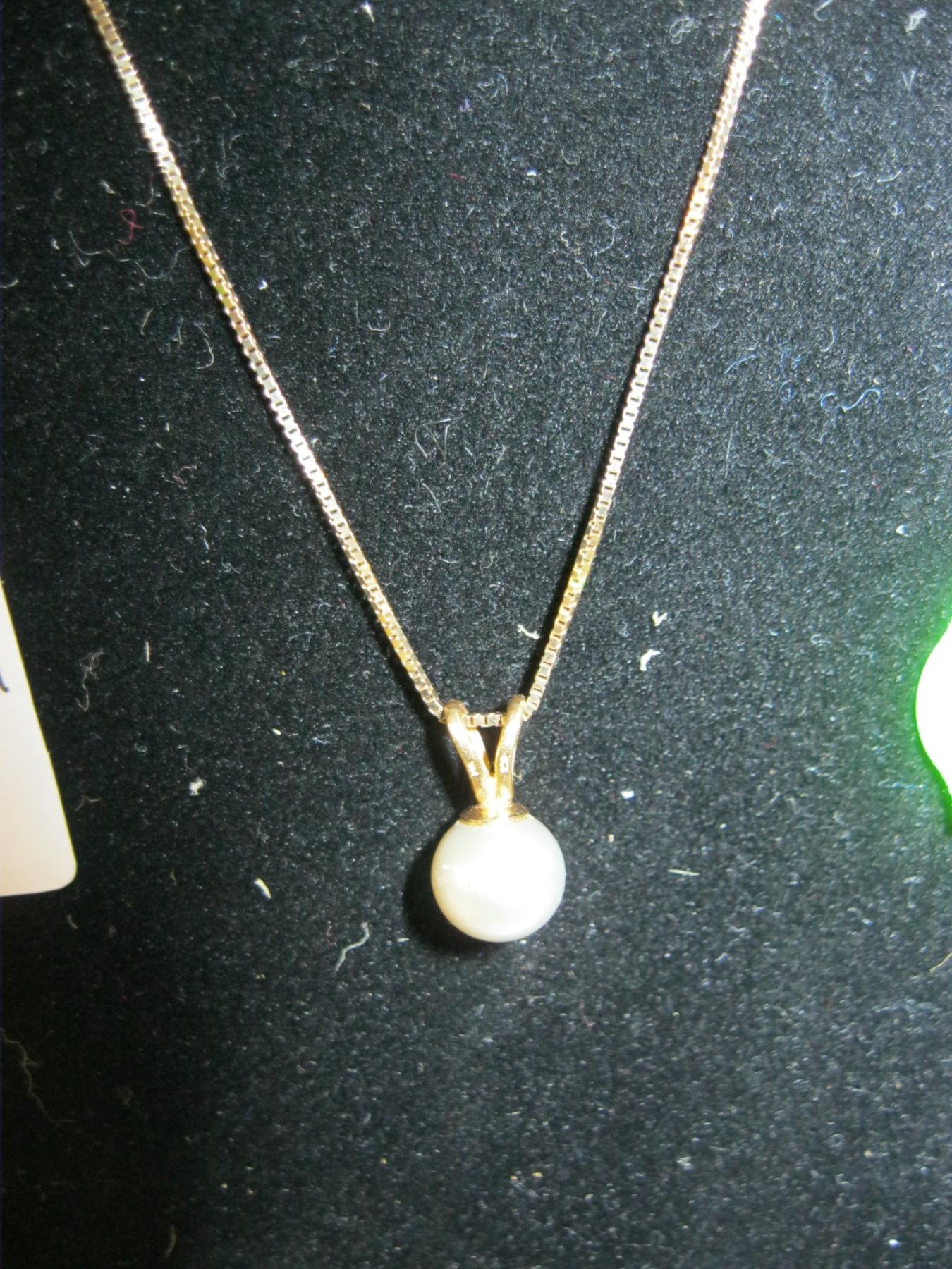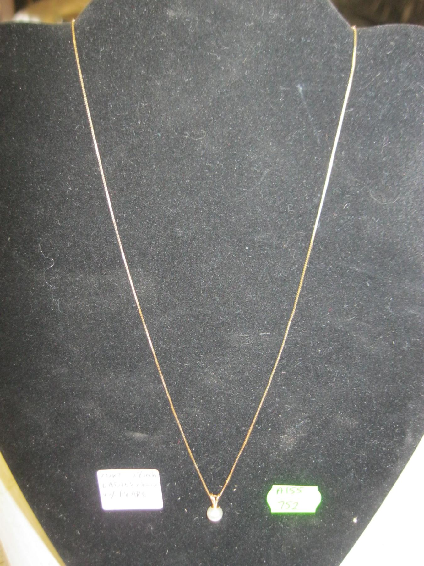Lot 752 10KT 18" CHAIN W/PEARL PENDANT