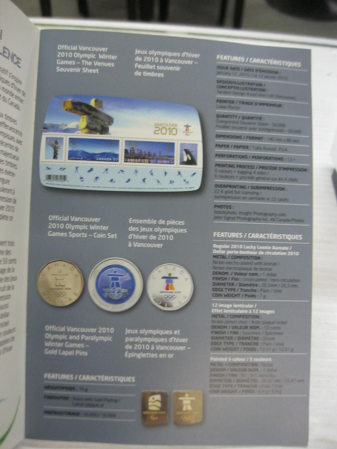 Lot 794 2010 VANCOUVER OLYMPICS COIN & PIN COLLECTOR SET