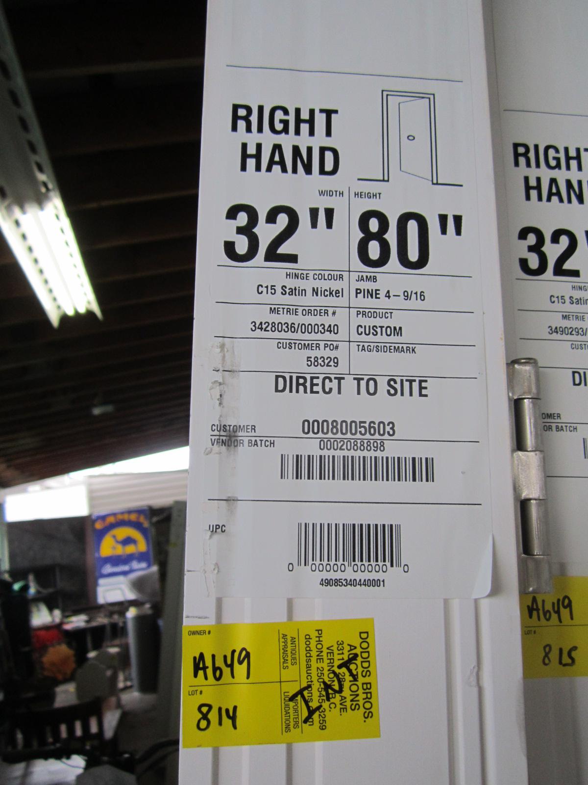 Lot 814 32" X 80" RIGHT HAND INTERIOR DOOR IN FRAME