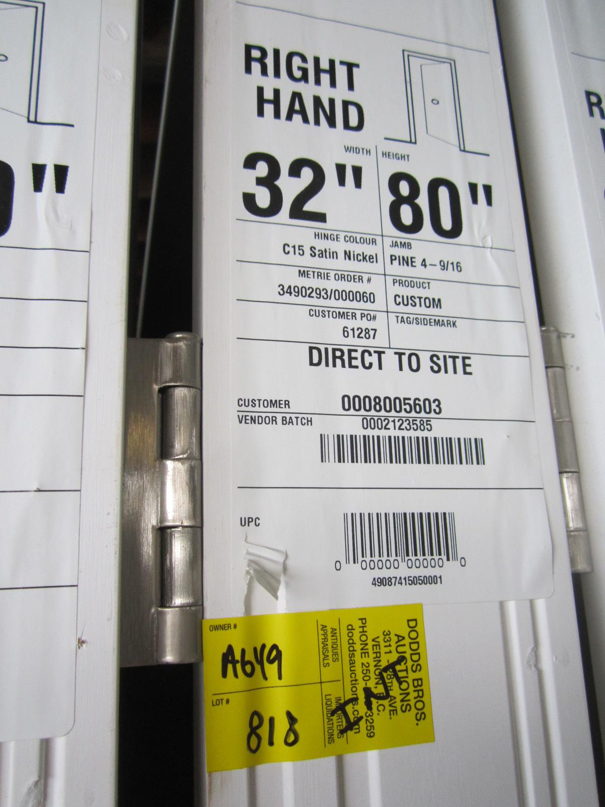 Lot 818 32" X 80" RIGHT HAND INTERIOR DOOR IN FRAME