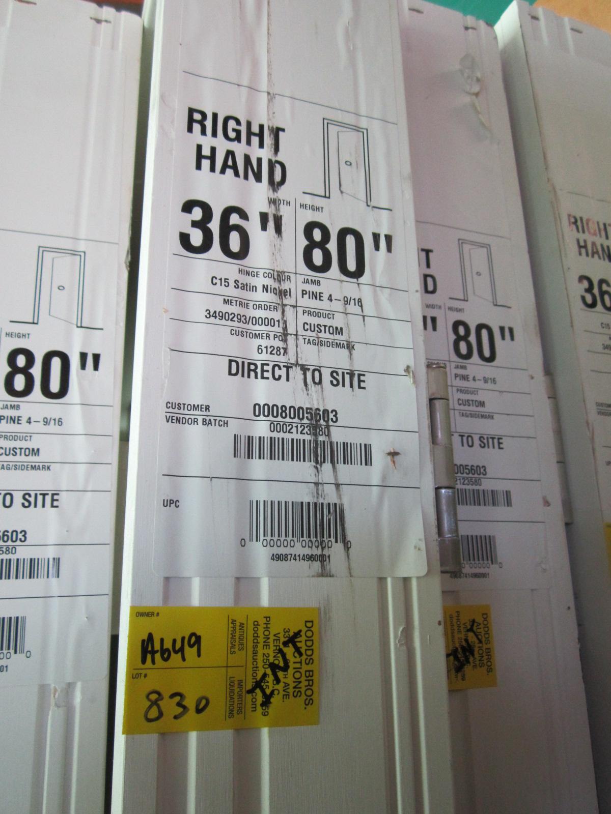 Lot 830 36" X 80" RIGHT HAND INTERIOR DOOR IN FRAME