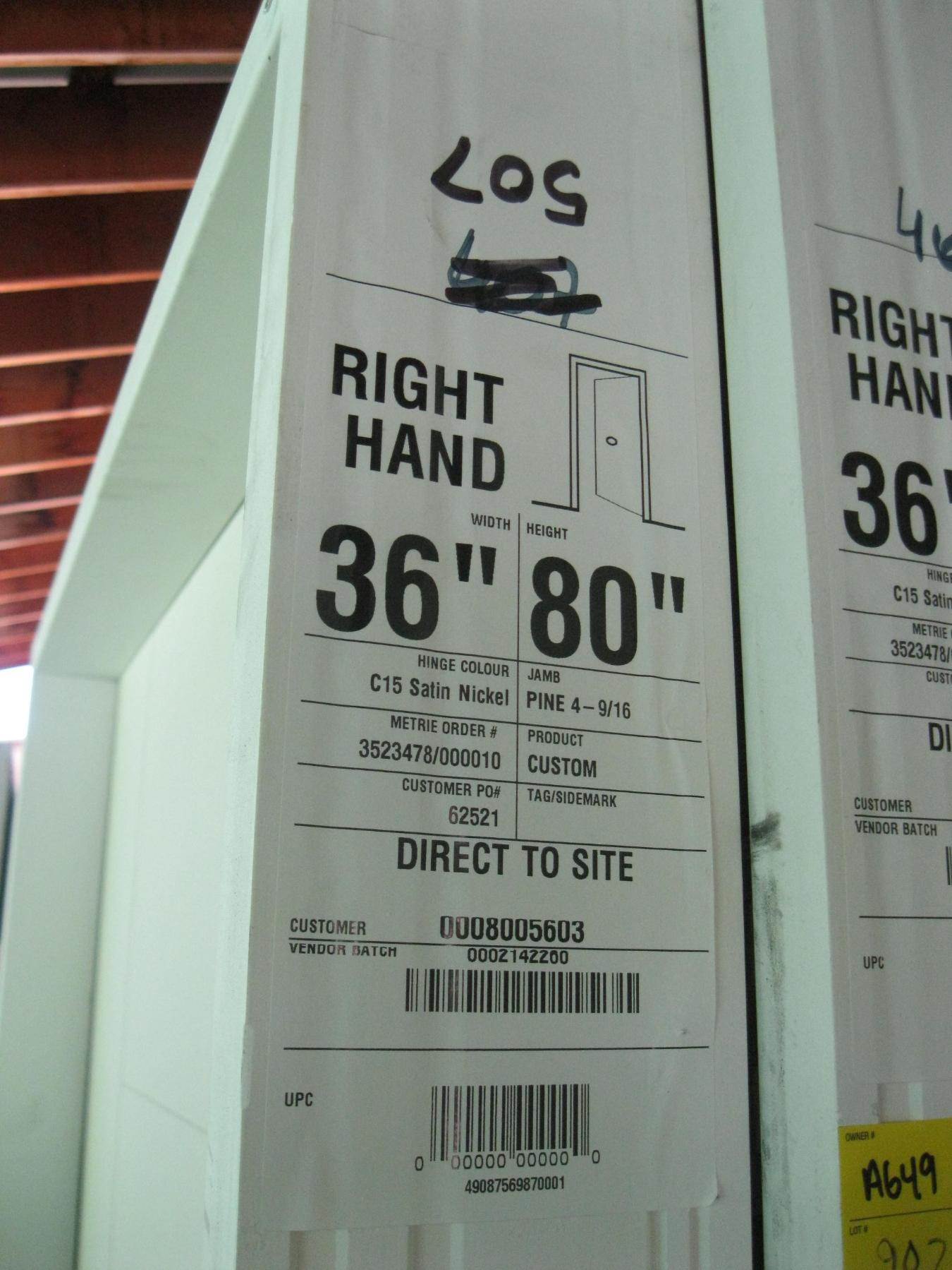 Lot 907 36" X 80" RIGHT HAND INTERIOR DOOR