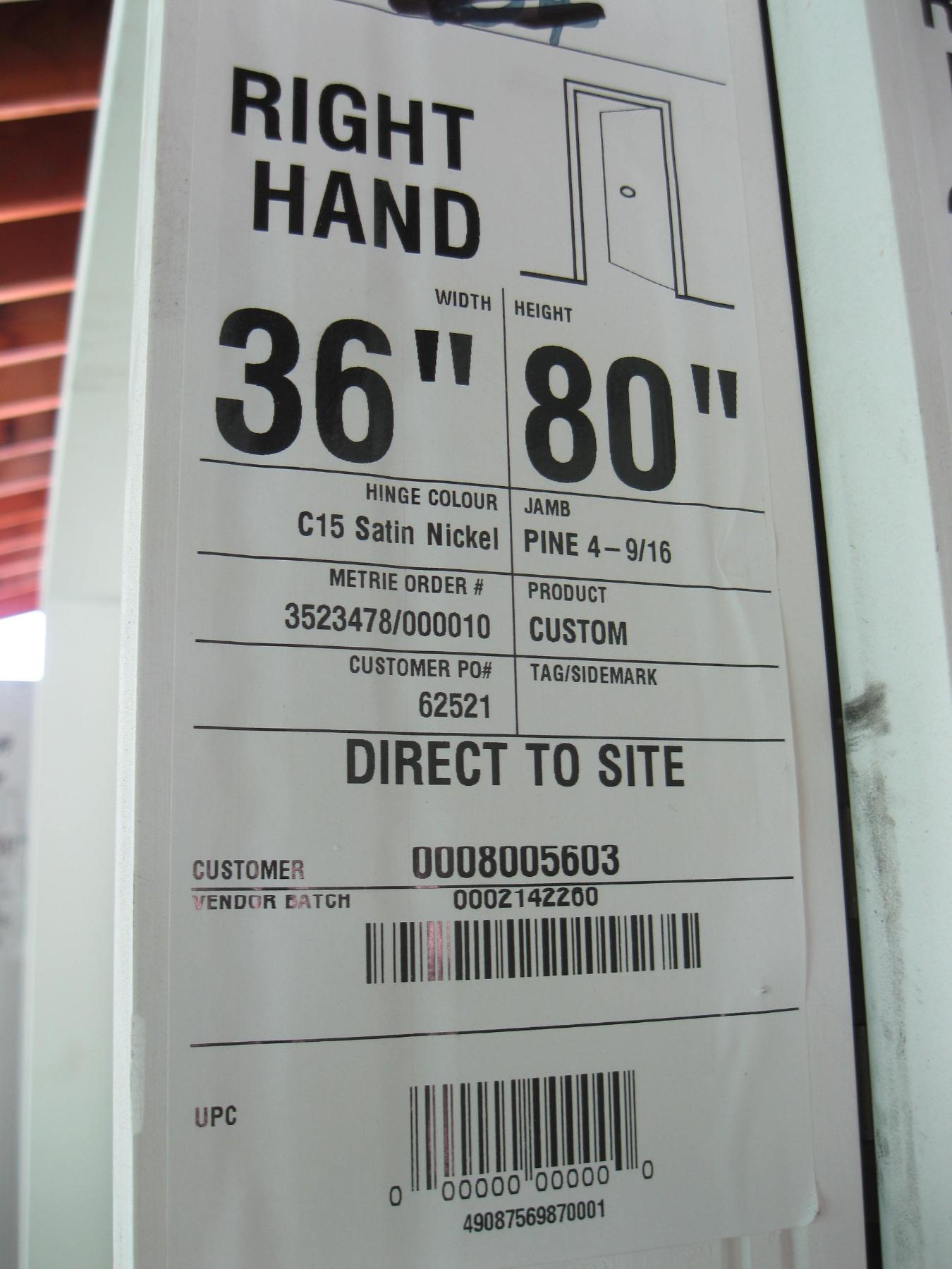 Lot 912 36" X 80" RIGHT HAND INTERIOR DOOR