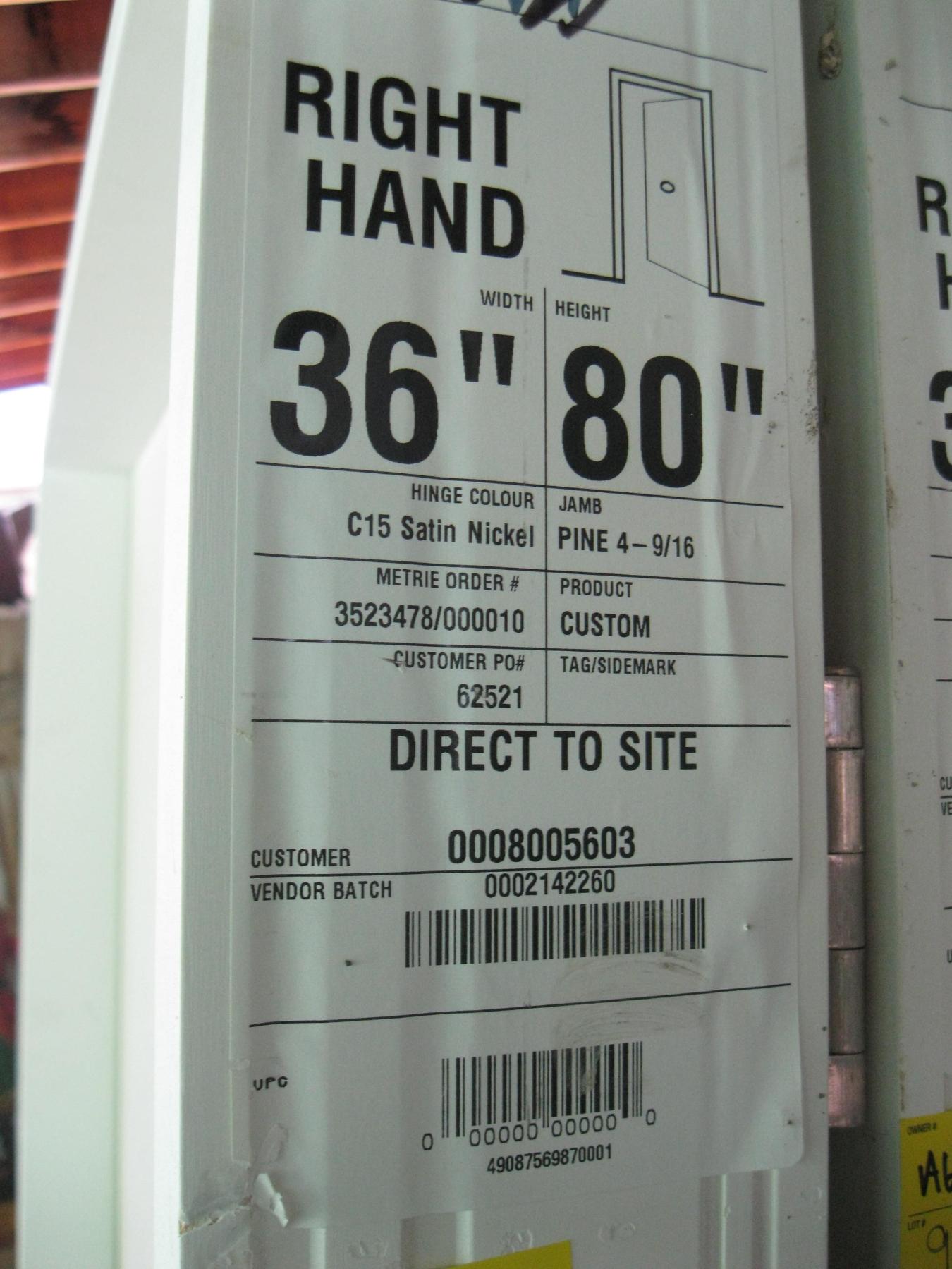Lot 914 36" X 80" RIGHT HAND INTERIOR DOOR
