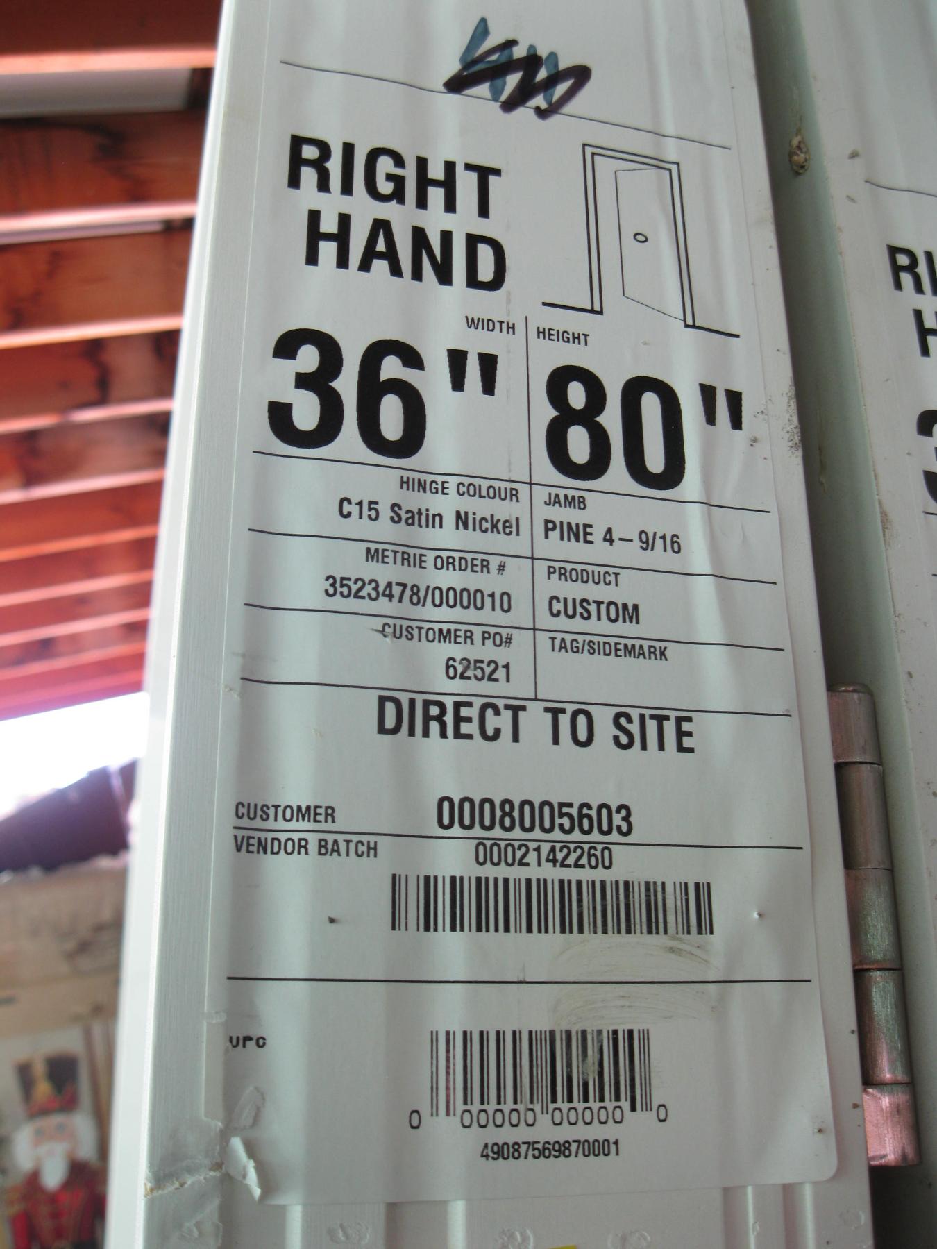Lot 917 36" X 80" RIGHT HAND INTERIOR DOOR