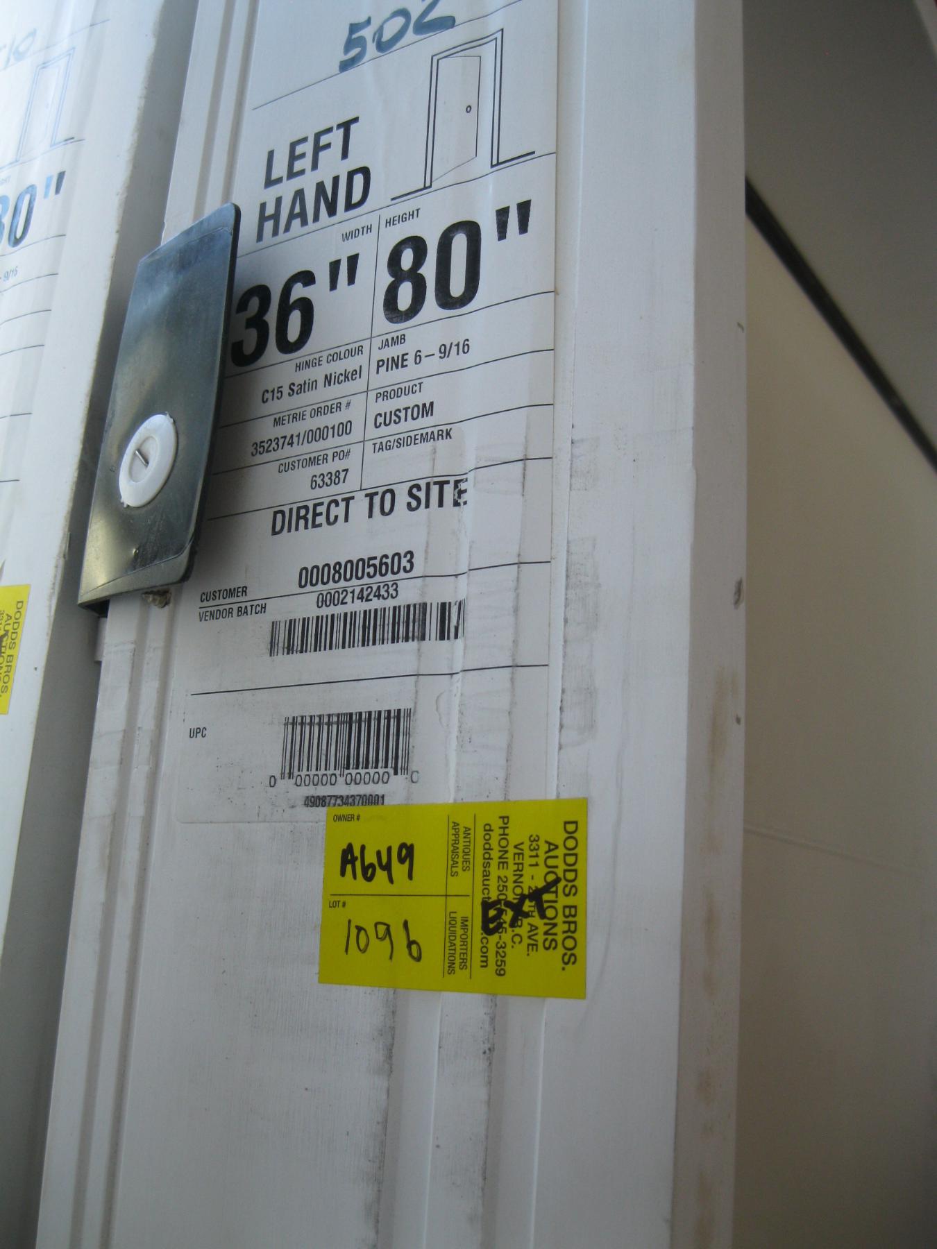Lot 1096 36" X 80" LEFT HAND EXTERIOR DOOR W/6" FRAME