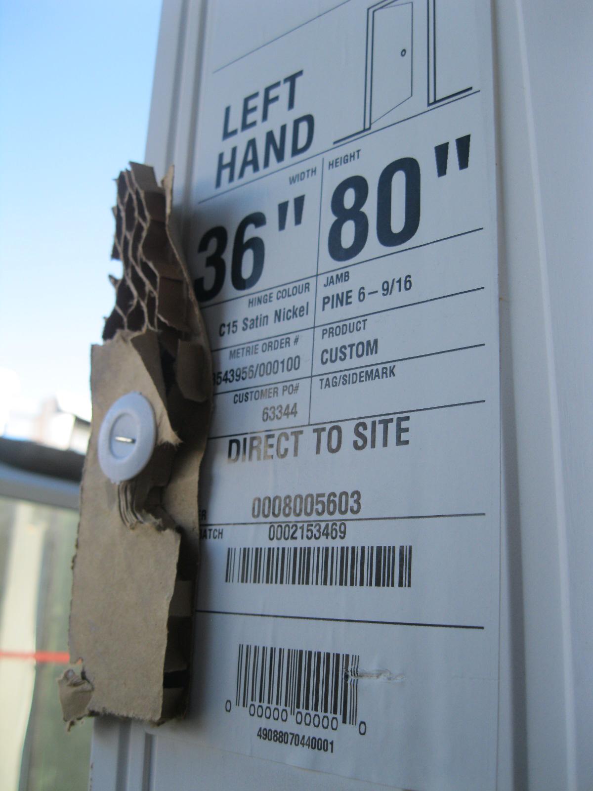 Lot 1104 36" X 80" LEFT HAND EXTERIOR DOOR W/6" FRAME
