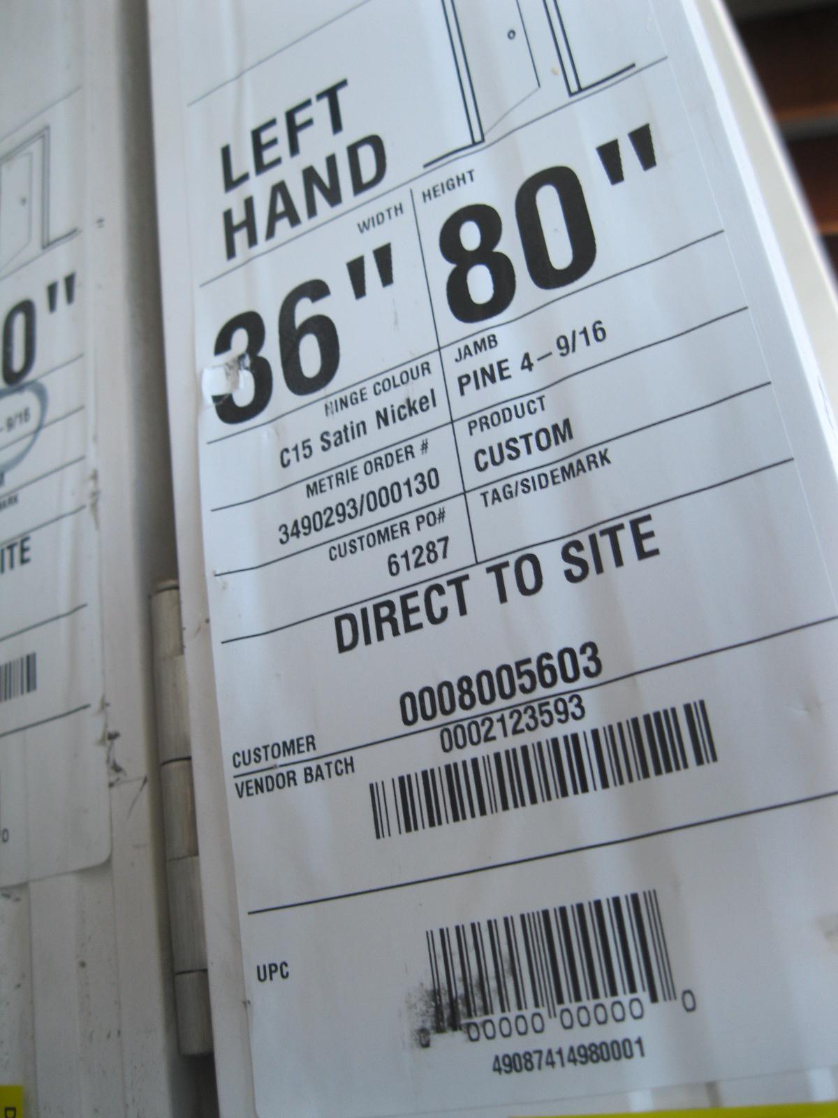 Lot 1115 36" X 80" LEFT HAND INTERIOR DOOR W/FRAME
