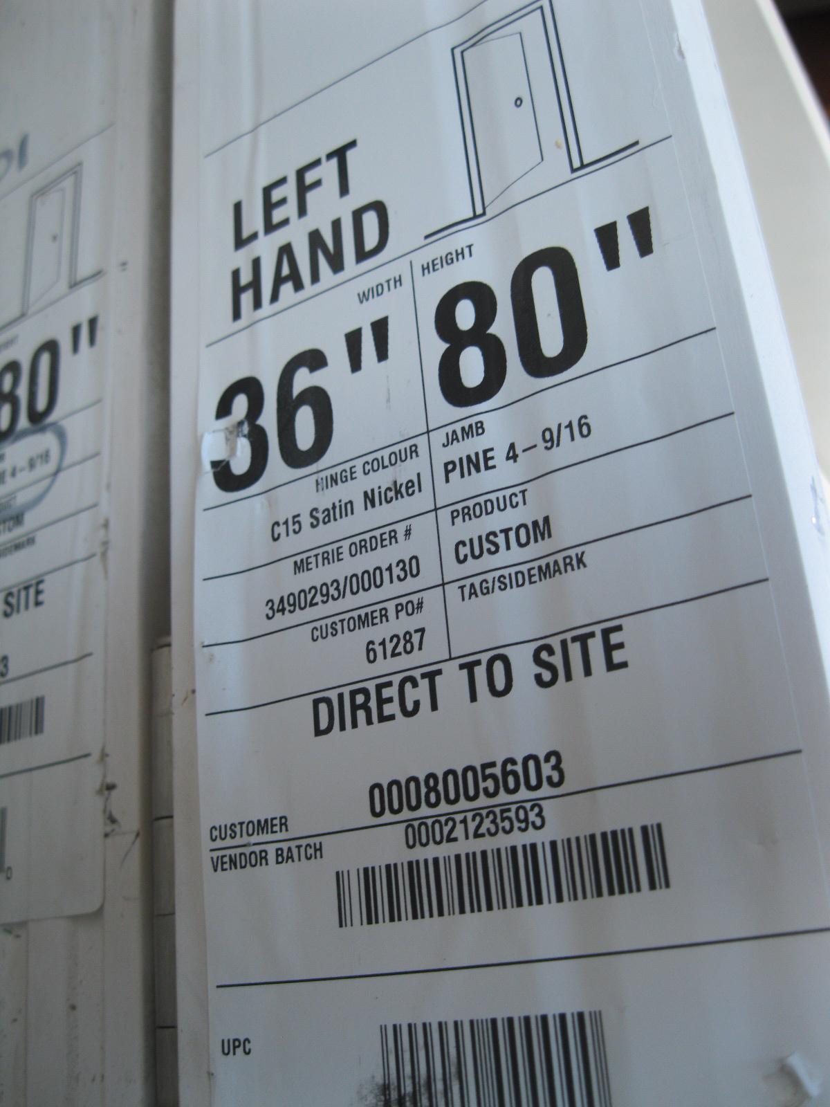 Lot 1116 36" X 80" LEFT HAND INTERIOR DOOR W/FRAME