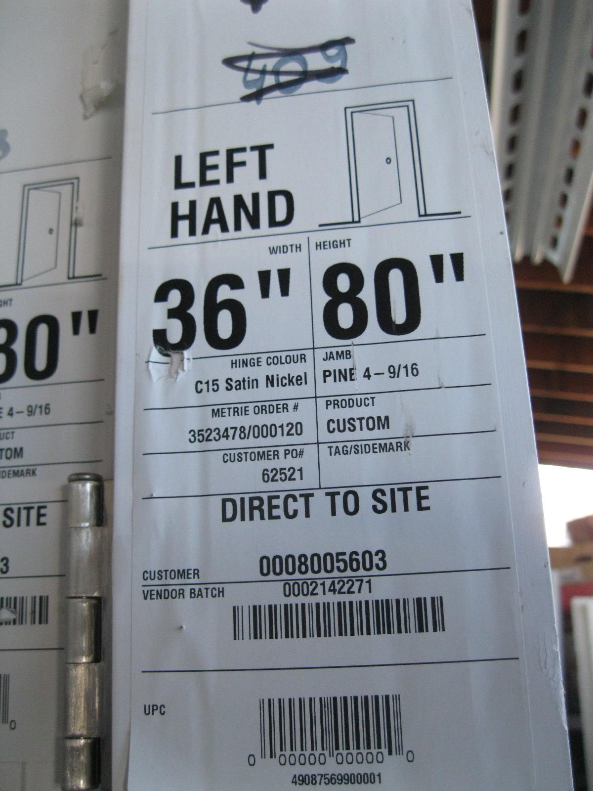 Lot 1121 36" X 80" LEFT HAND INTERIOR DOOR W/FRAME