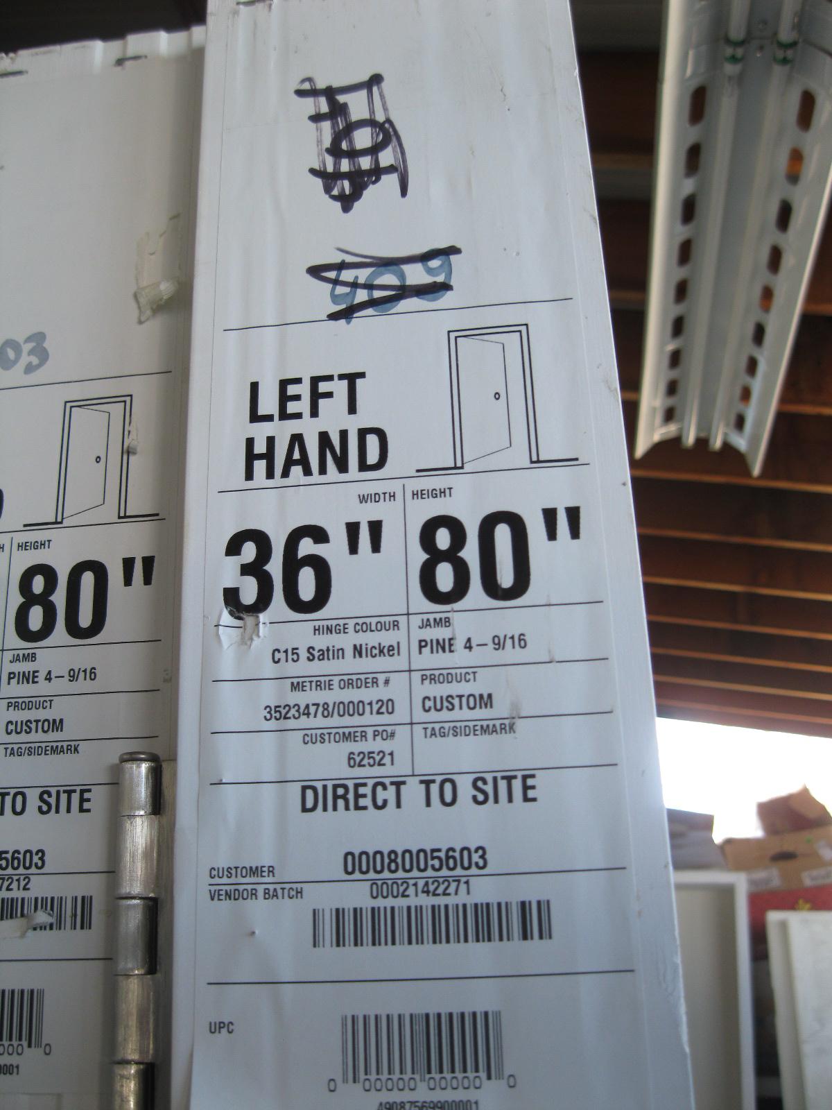Lot 1125 36" X 80" LEFT HAND INTERIOR DOOR W/FRAME