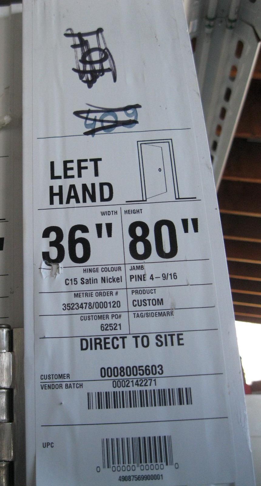 Lot 1126 36" X 80" LEFT HAND INTERIOR DOOR W/FRAME