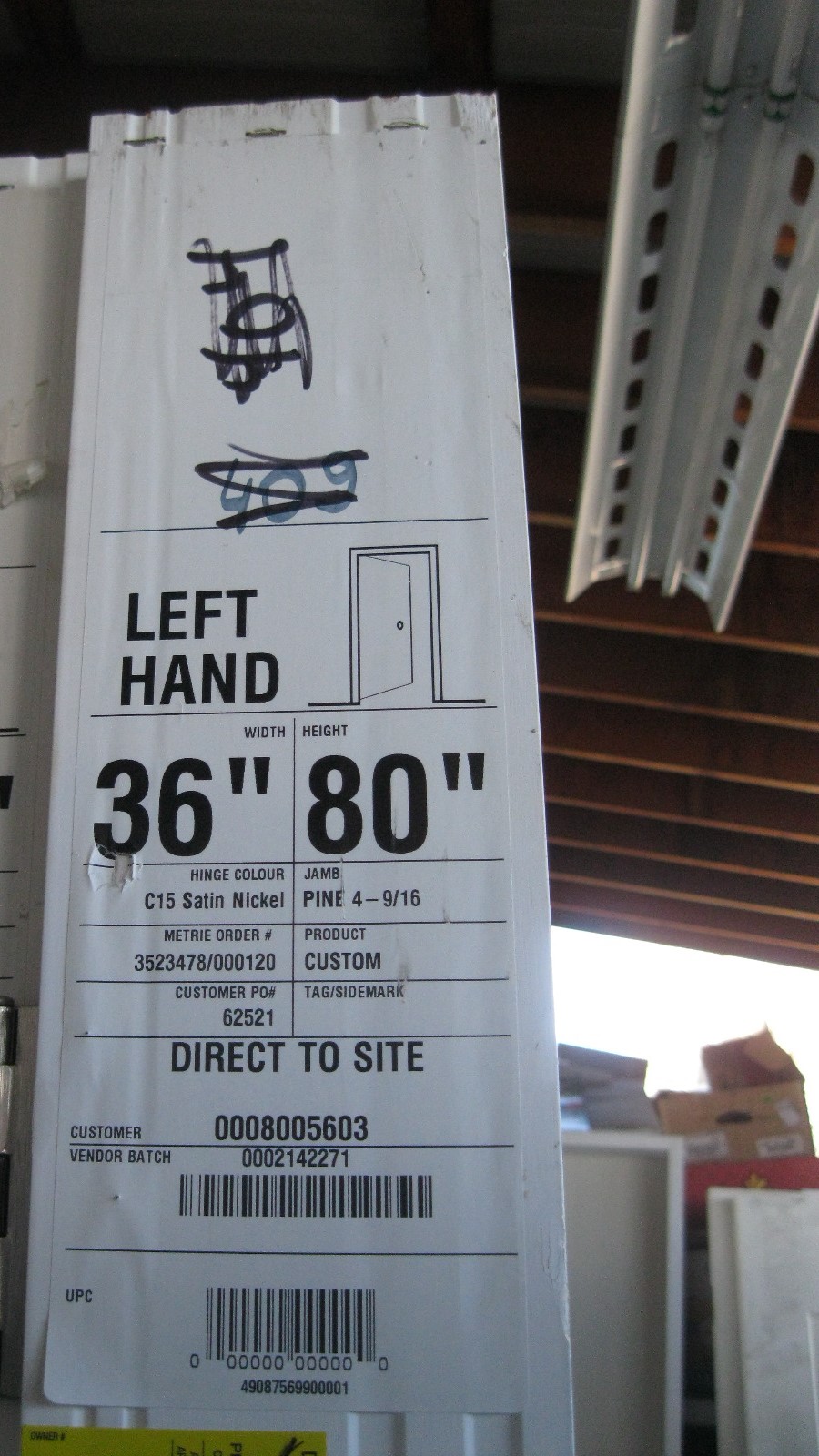 Lot 1127 36" X 80" LEFT HAND INTERIOR DOOR W/FRAME