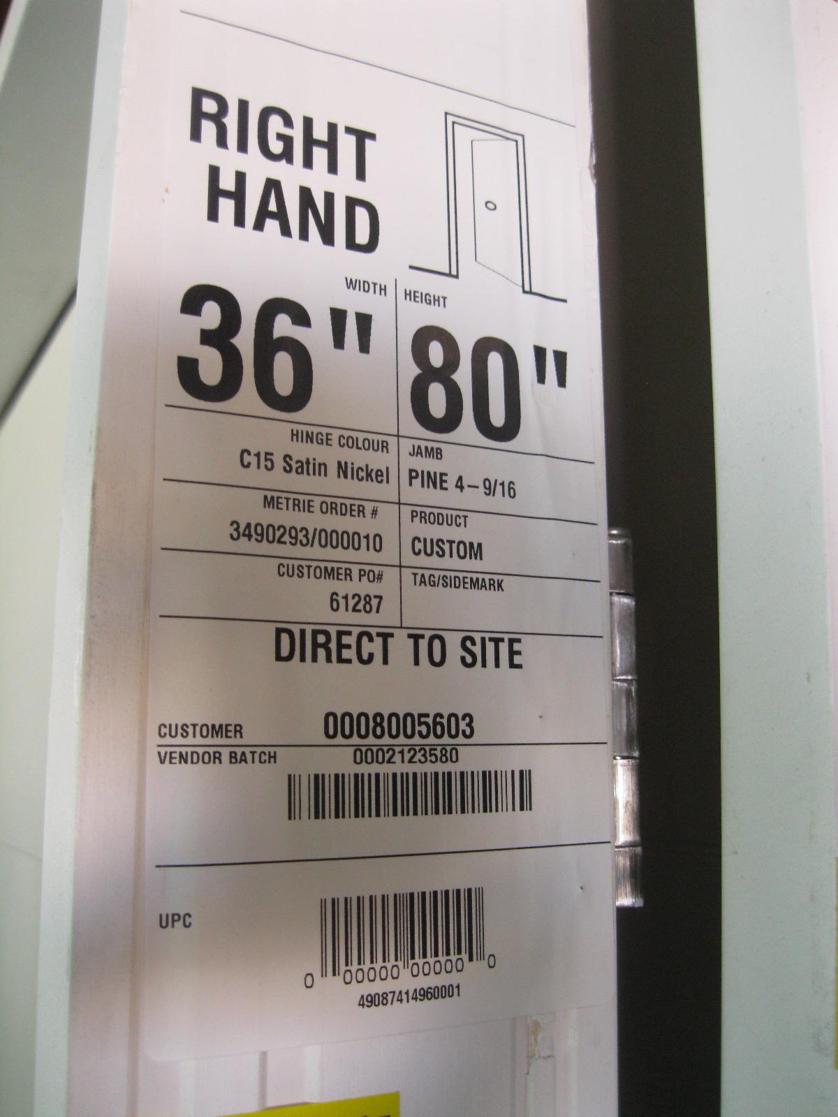 Lot 1129 36" x 80" RIGHT HAND EXTERIOR DOOR W/6" FRAME