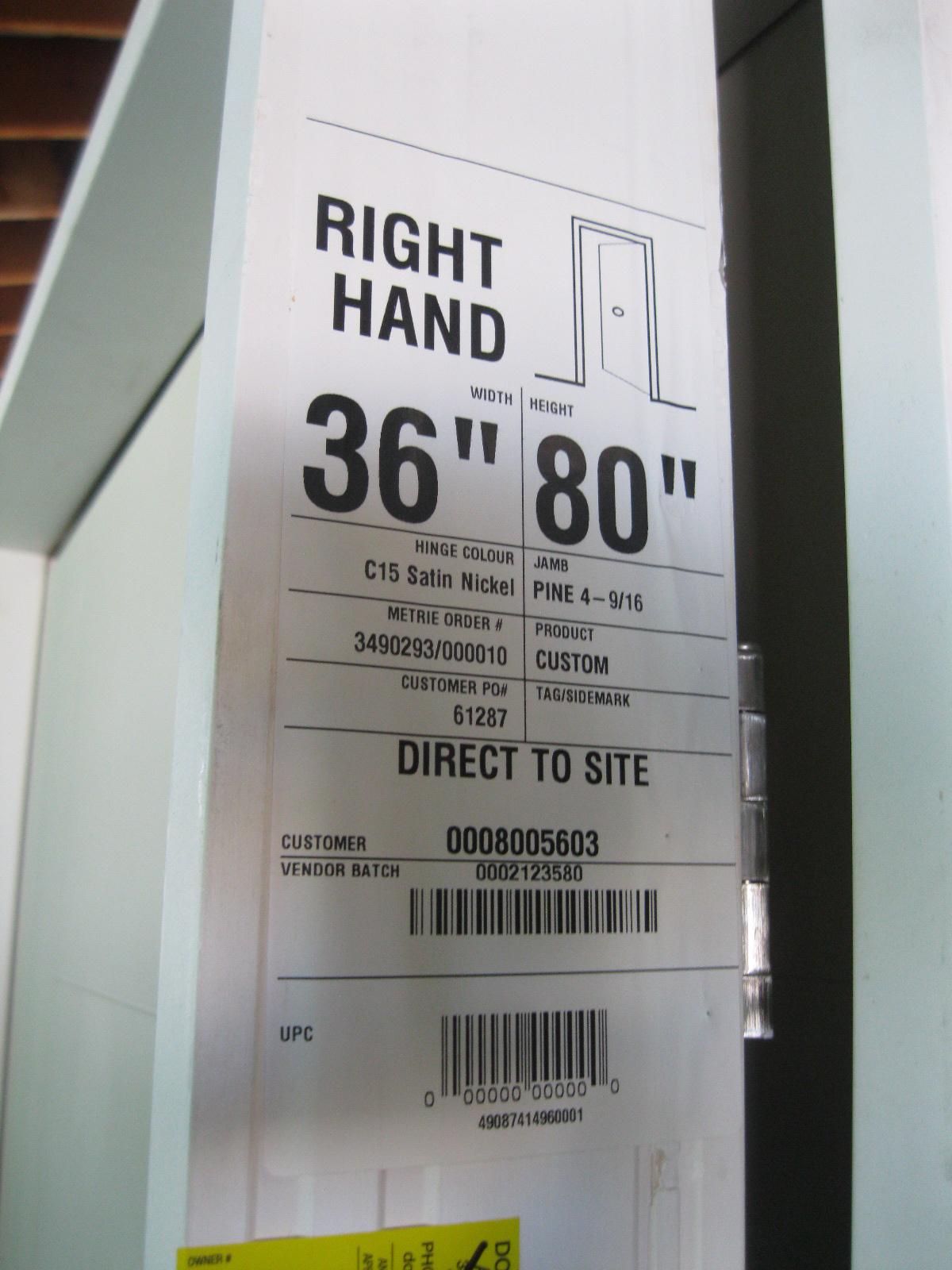 Lot 1130 36" x 80" RIGHT HAND EXTERIOR DOOR W/6" FRAME