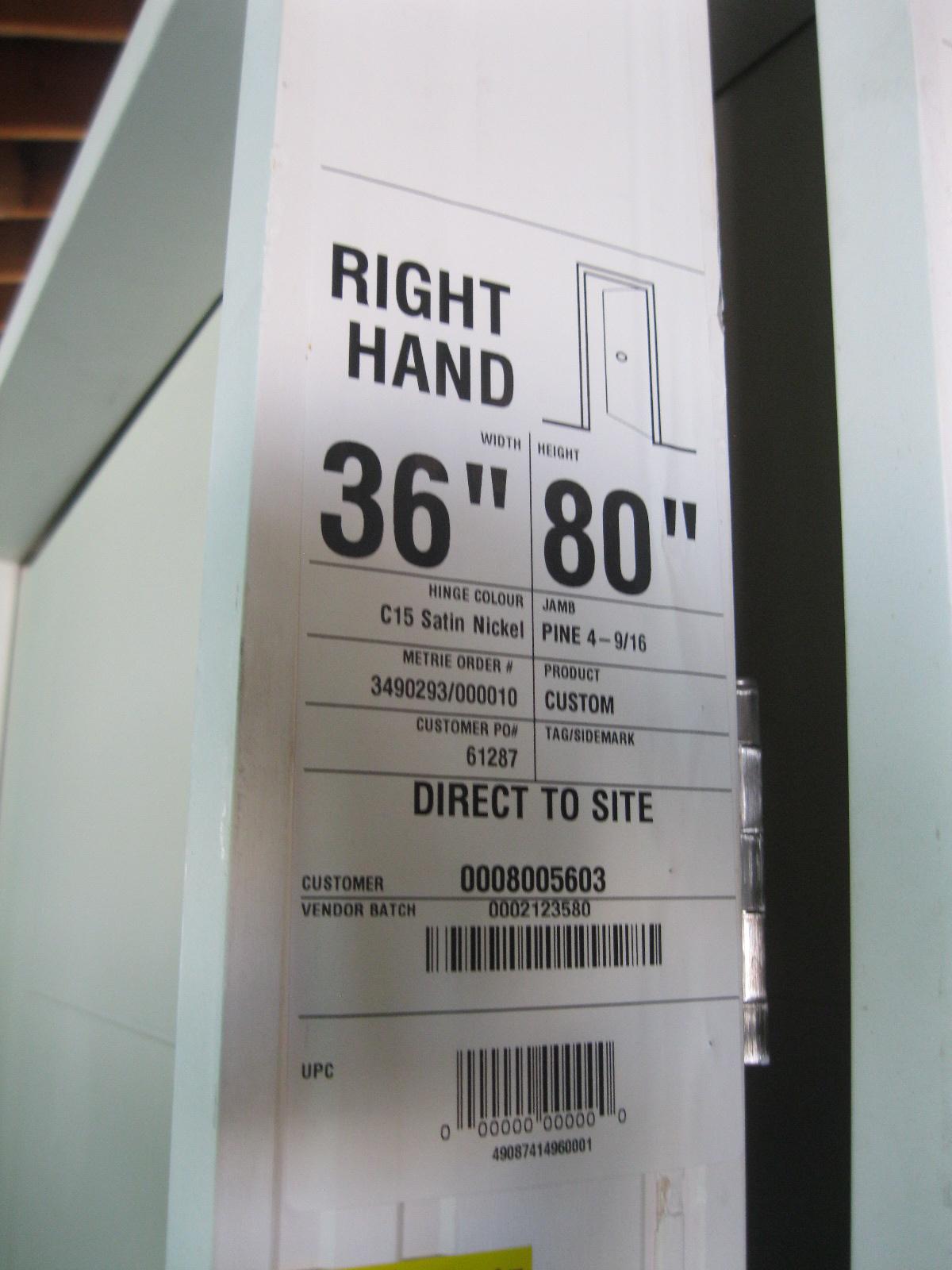 Lot 1132 36" x 80" RIGHT HAND EXTERIOR DOOR W/6" FRAME