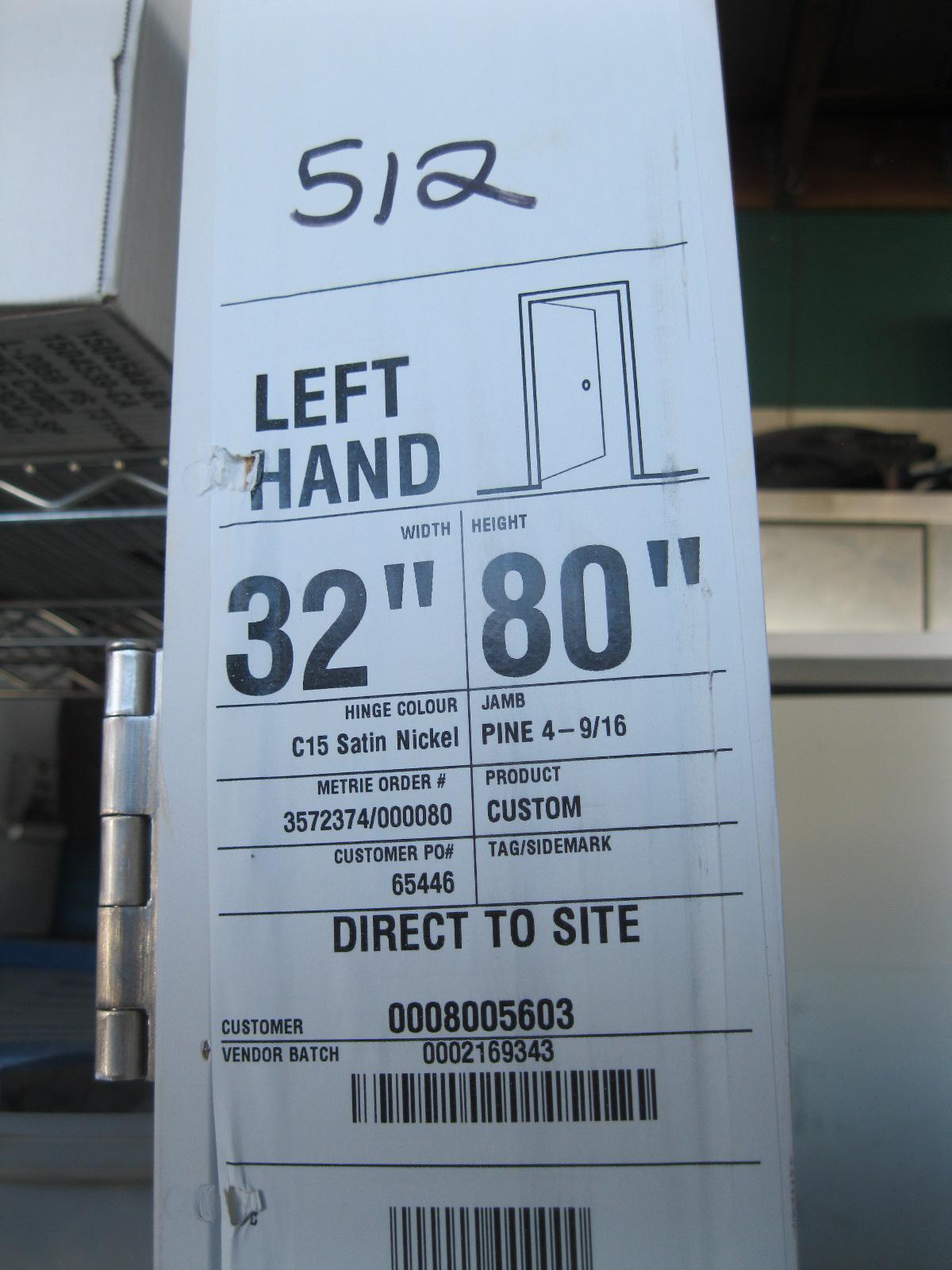 Lot 1133 32" X 80" LEFT HAND INTERIOR DOOR W/FRAME
