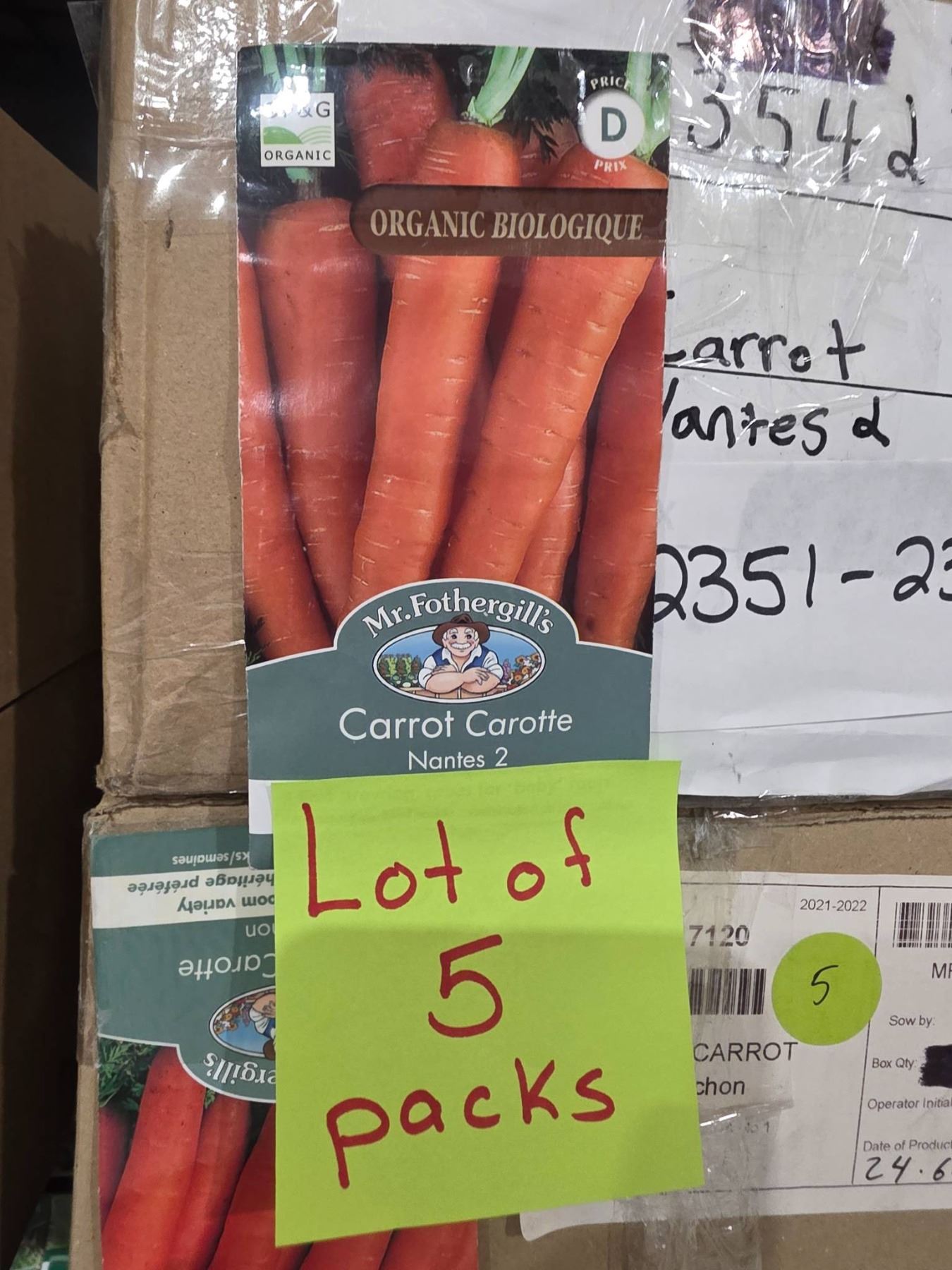 Lot 2359 Carrot Nantes 2 Organic Seeds – 5 Packs of Mr. Fothergill’s
